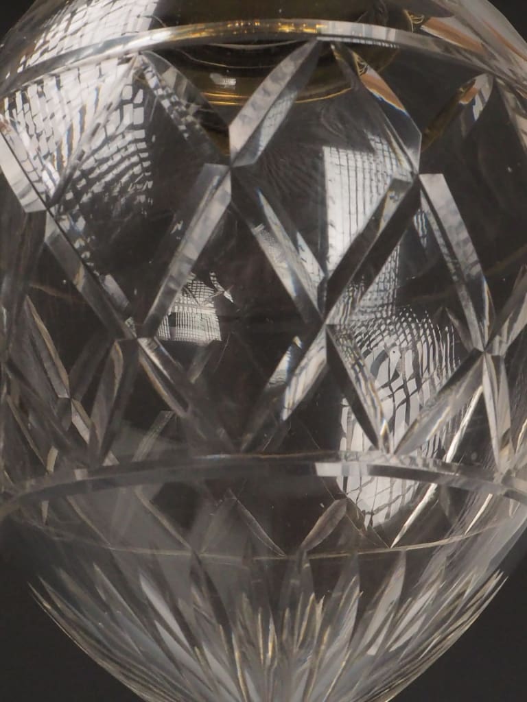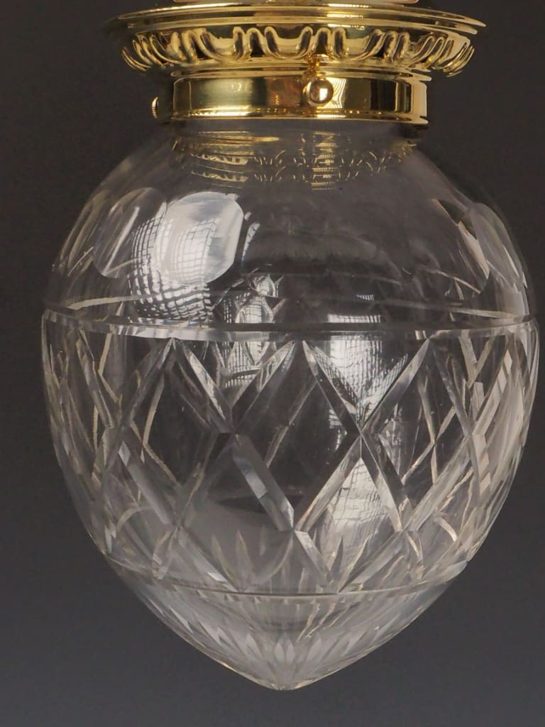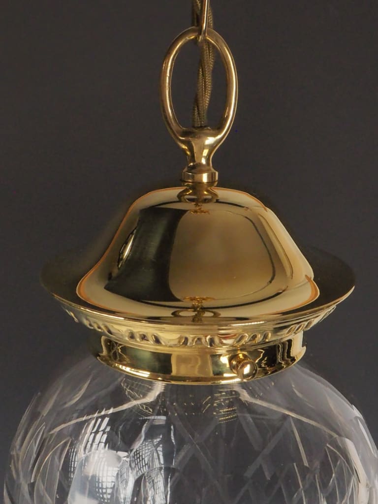 This antique pendant light offers both radiant illumination and a bold decorative statement. Its large, finely cut glass shade captures and refracts light beautifully, casting intricate patterns and soft shadows that enhance the atmosphere of any room.
