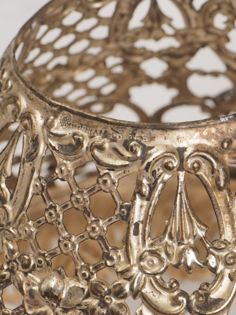 During this period, Gorham partnered with master London silversmith Henry Webster, whose refined neoclassical sensibility enriched the firm’s aesthetic. The result of this collaboration, these candle lamps feature intricately pierced shades, each stamped "Gorham," and remain in well-preserved antique condition.