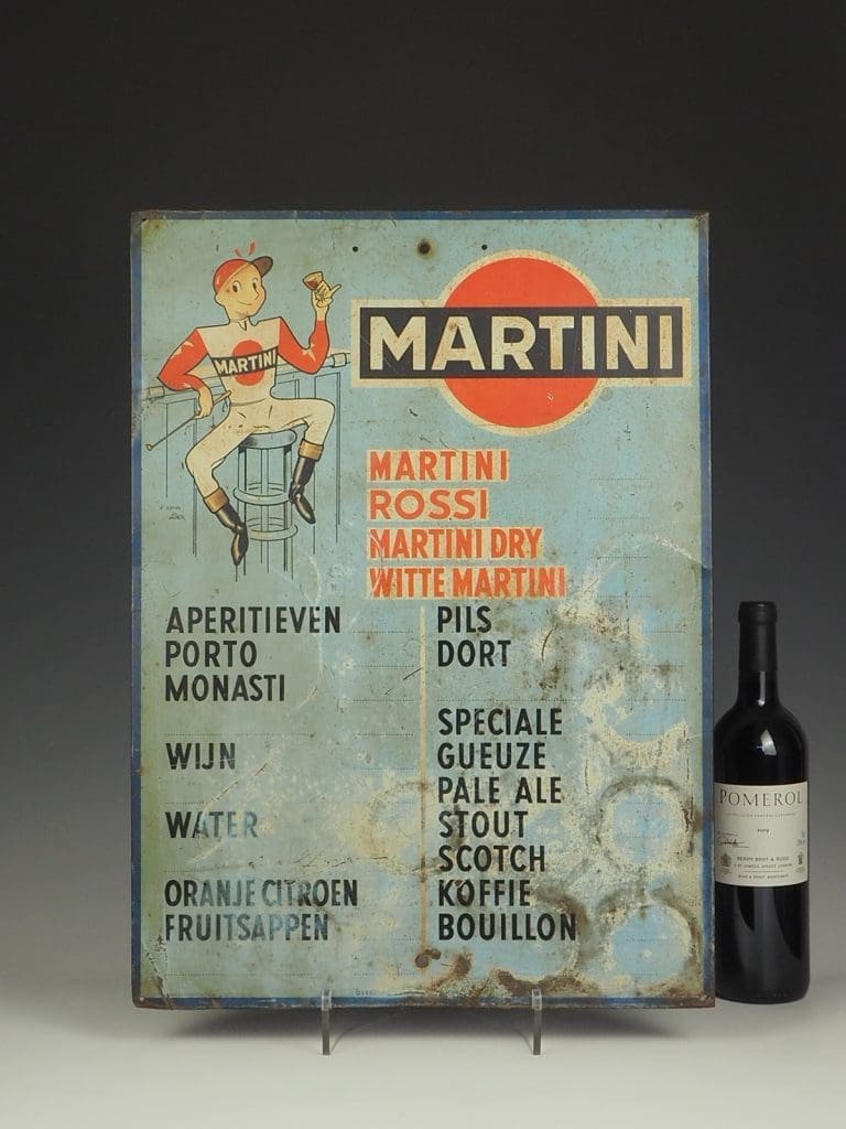 Exquisite 1950s Martini Drinks Advertising Sign, a rare and collectible piece that embodies the charm of mid-century bistro culture.