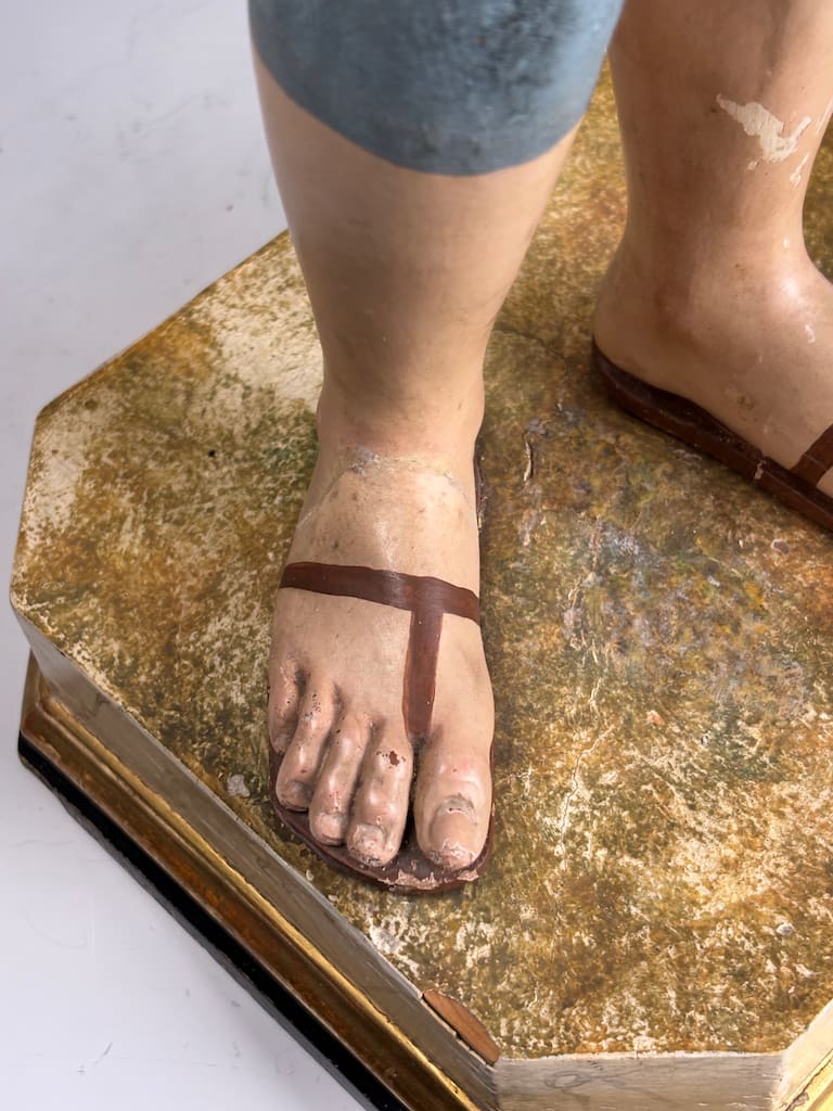 This mid-18th century Italian female Santos figure is in very good antique condition, showing age-appropriate wear consistent with its age and devotional use.