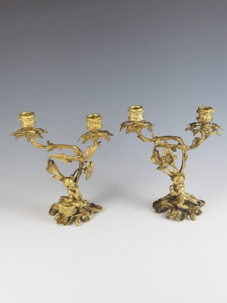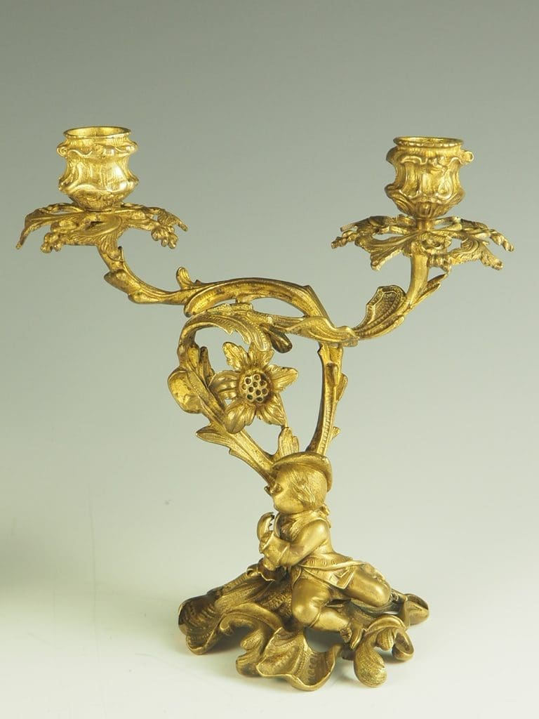 Pair of 19th Century Rococo Revival Ormolu Twin Candelabra