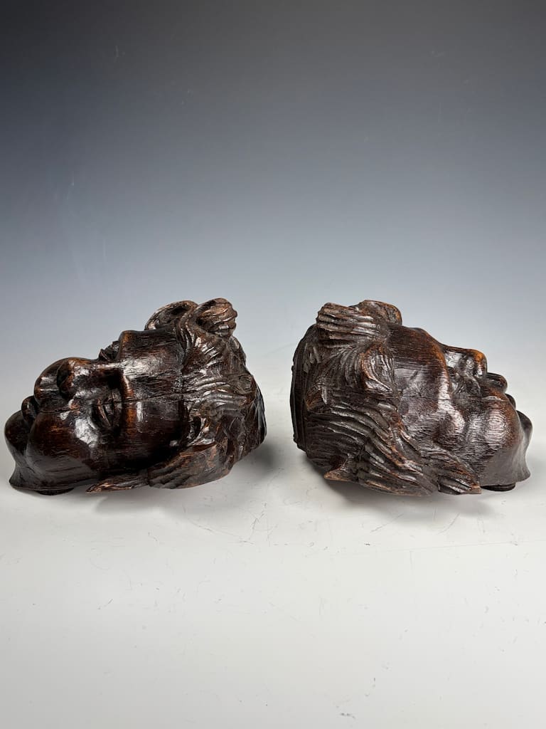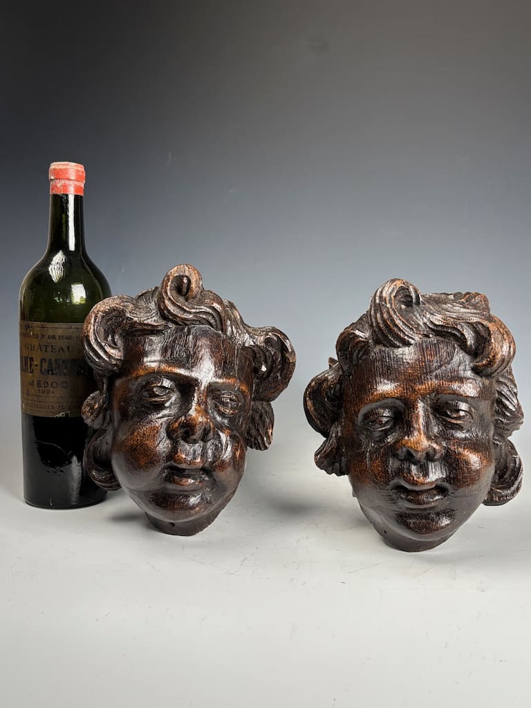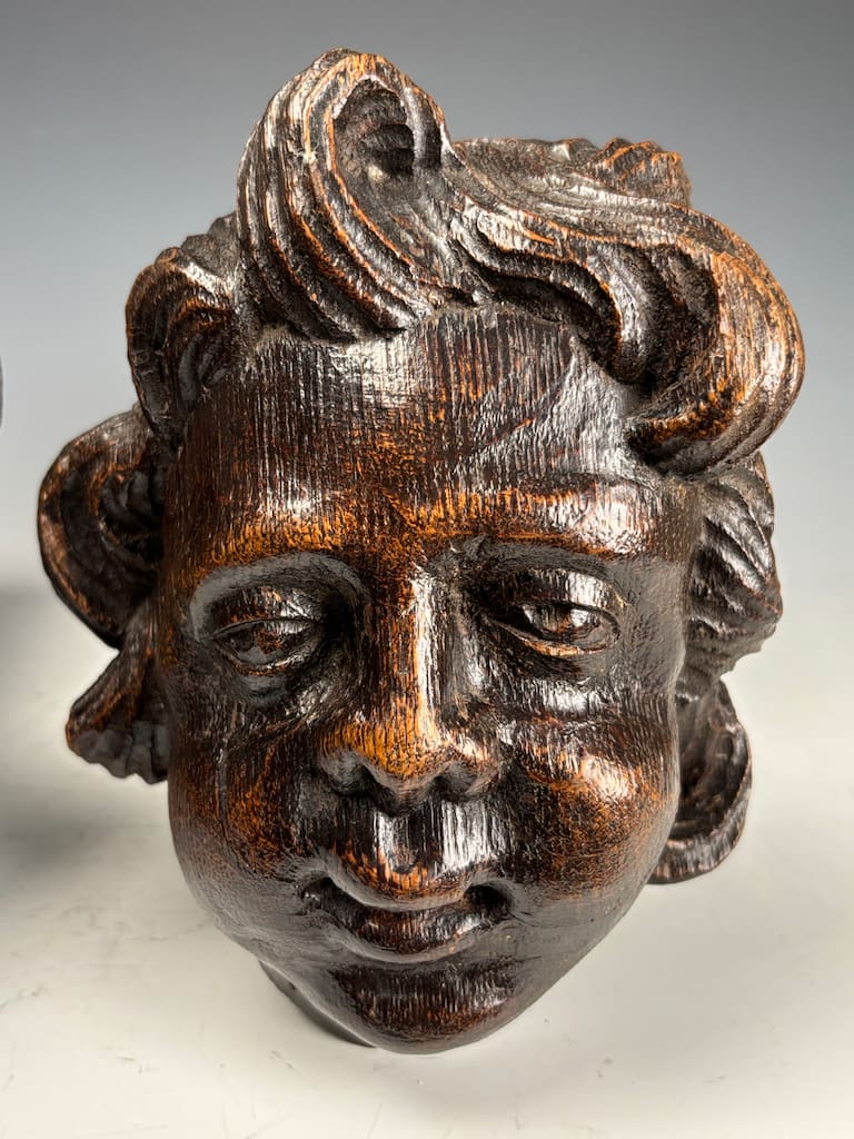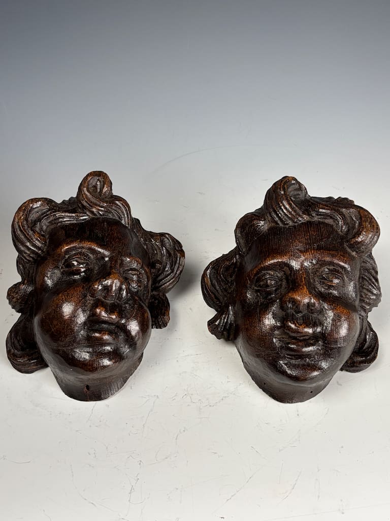Pair of 18th Century Flemish Carved Wooden Cherub (Putto) Heads
