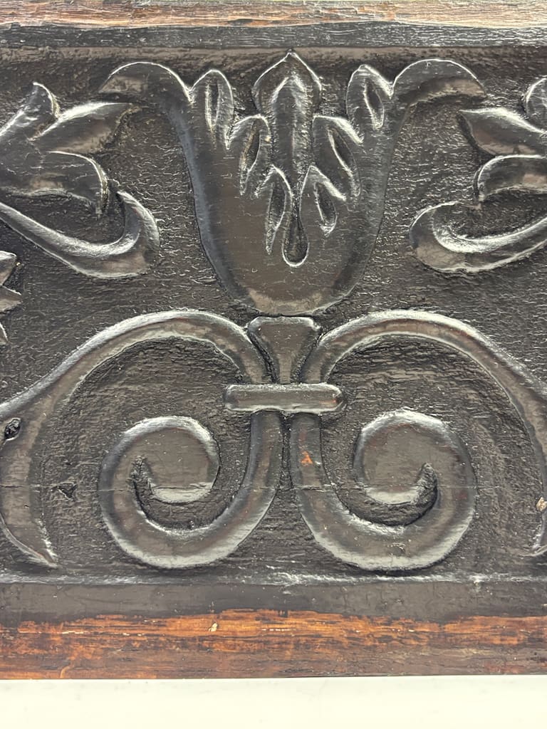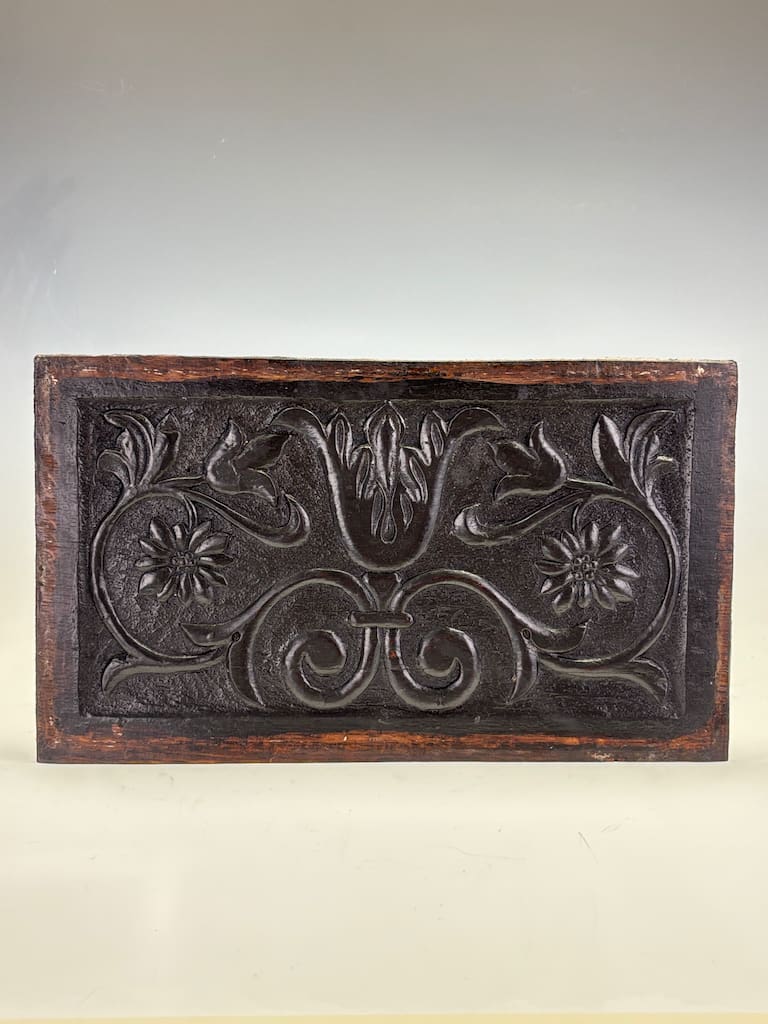 These panels were originally part of a larger piece of furniture, likely a coffer, cabinet, or a piece of wall panelling. It was a common practice during the 17th and 18th centuries for artisans to use highly decorative panels to elevate functional pieces, transforming them into works of art. The quality of the carving and the durable nature of the oak suggest they would have adorned a significant piece in the home of a wealthy family or merchant.