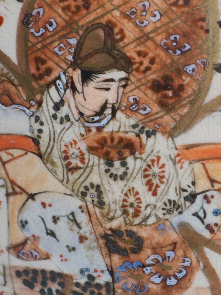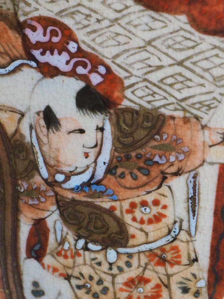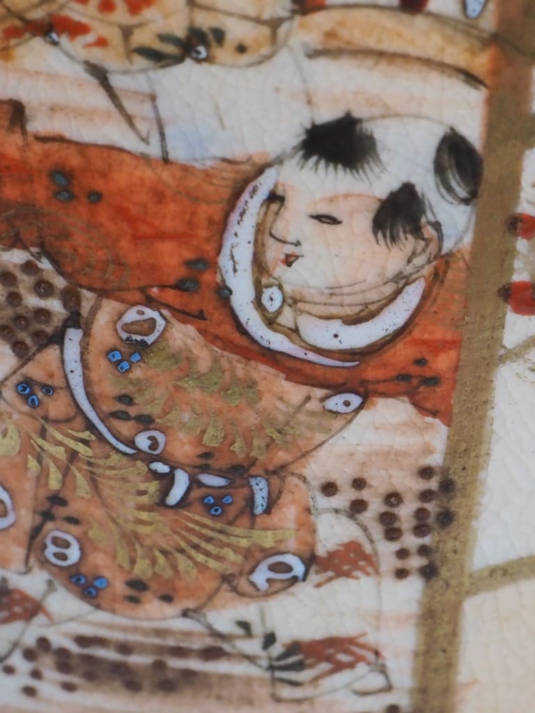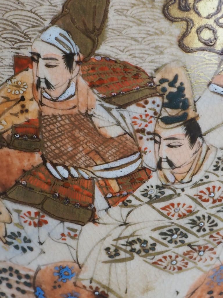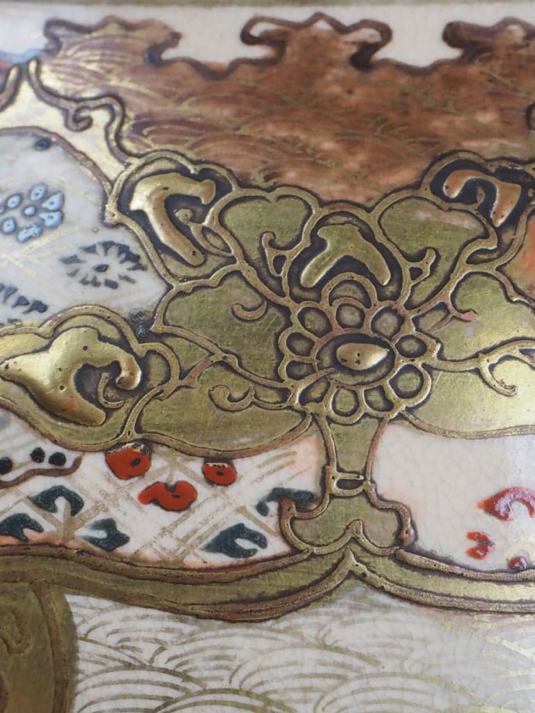 Rich enamelling and soft earthy tones typical of Satsuma porcelain
