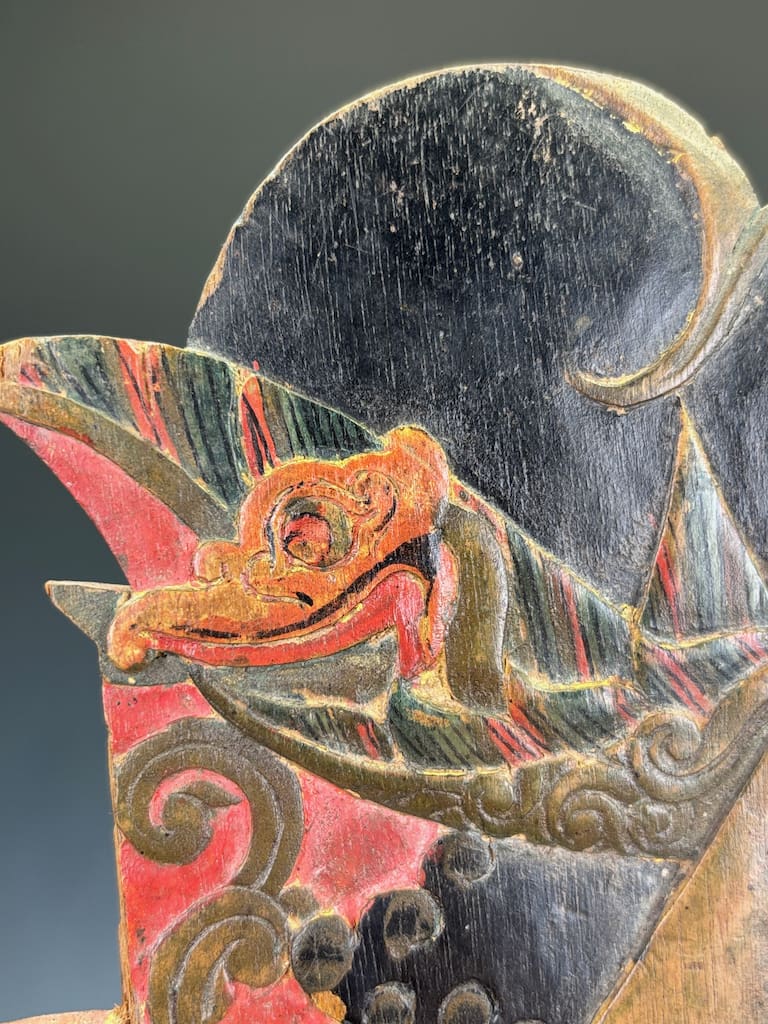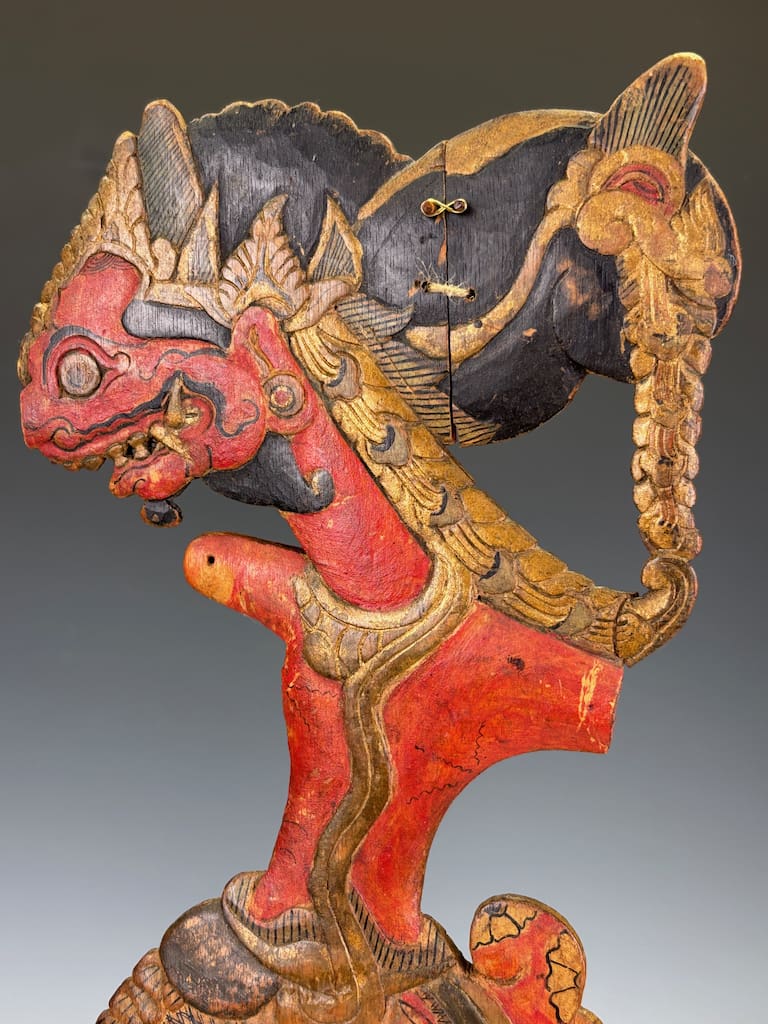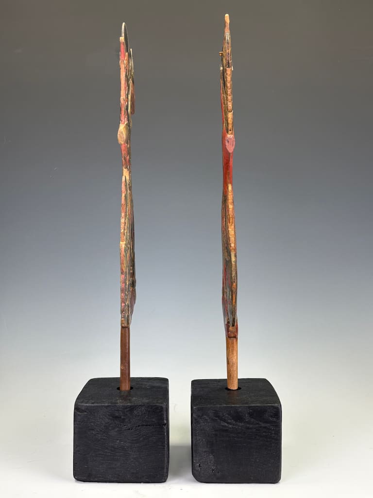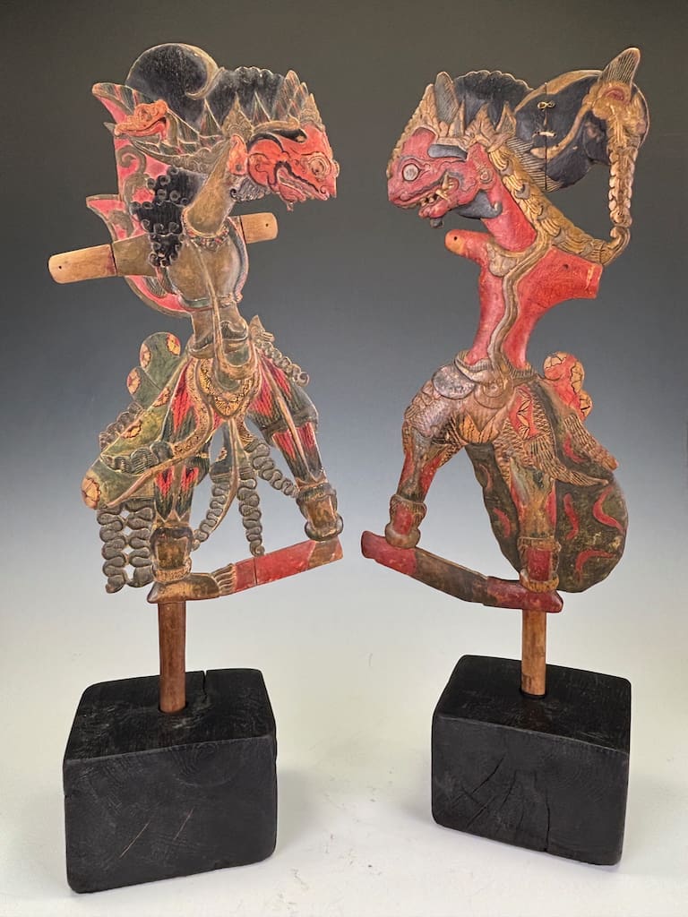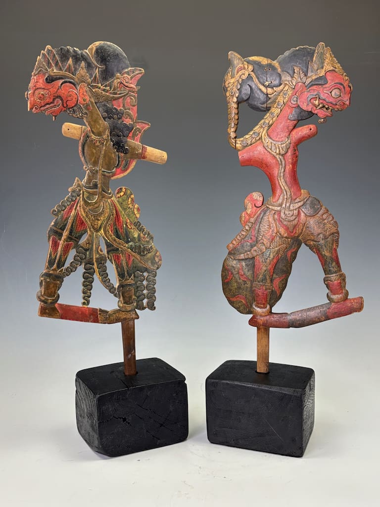 This particular pair offers dramatic sculptural appeal: the bold colouring, sinuous forms, and fine surface patina make them highly decorative as well as collectible. Whether displayed in a private collection, gallery, or as statement interior pieces, they carry with them the mystery and grandeur of Javanese storytelling traditions.