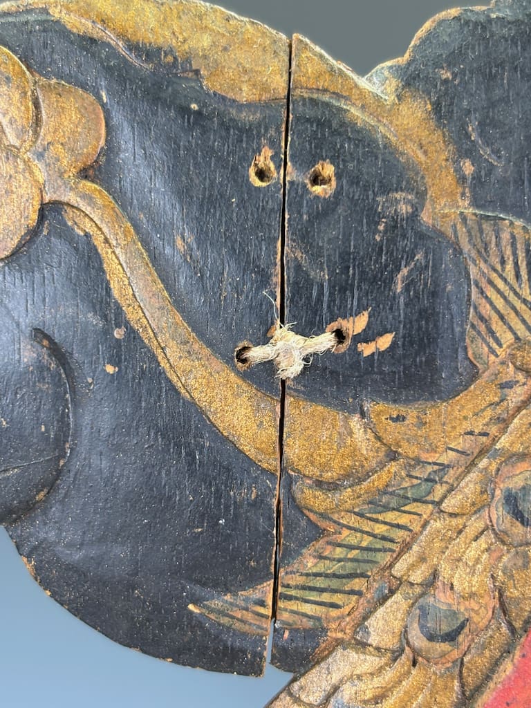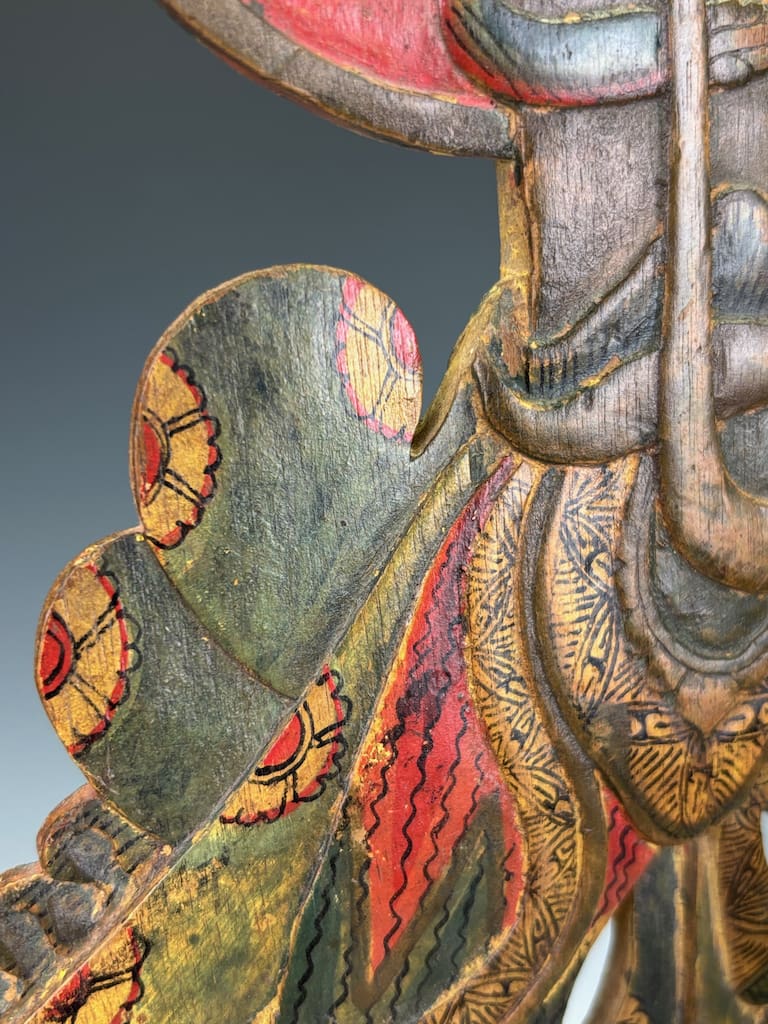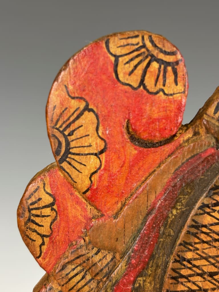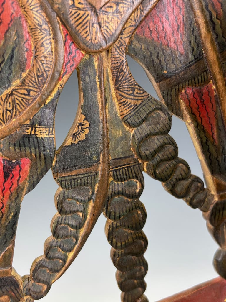 Each figure has been carved in expressive detail, with elongated features, stylised costumes, and traces of original polychrome decoration in red, black, and gold. Their commanding presence reflects both their theatrical purpose and their role as bearers of cultural identity. Today, they are recognised as part of the UNESCO Intangible Cultural Heritage of Humanity, underscoring their global cultural significance.