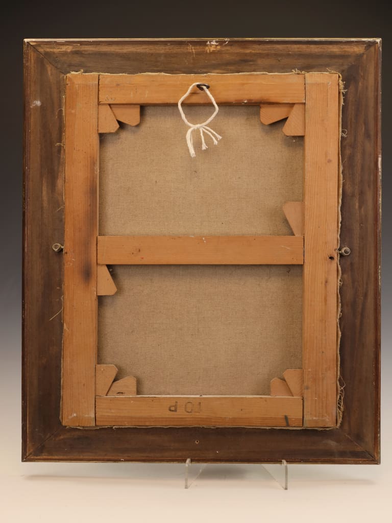 The frame is in very good order, with minor, age-appropriate wear to the gilding and black lacquer. It provides a structurally sound and aesthetically pleasing housing for the work.