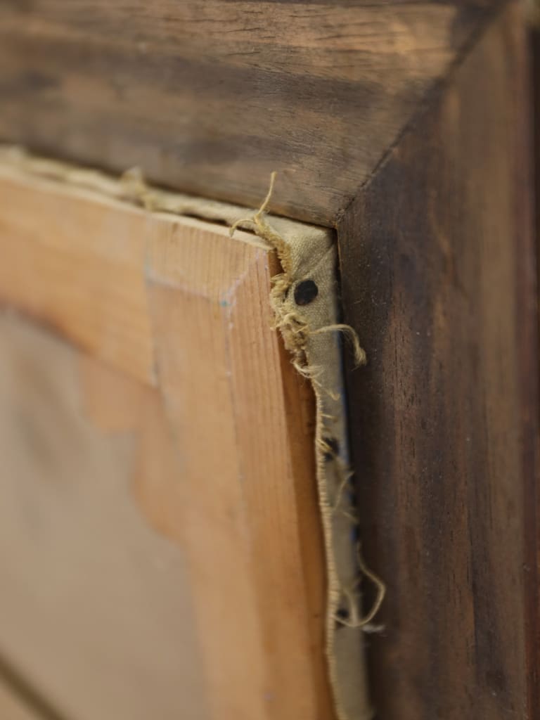 The canvas is flat and secure within its mount, showing no signs of warping or damp damage.