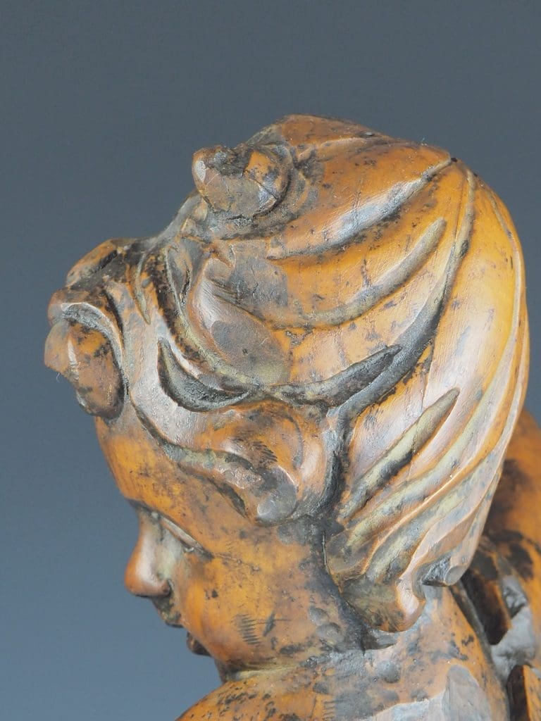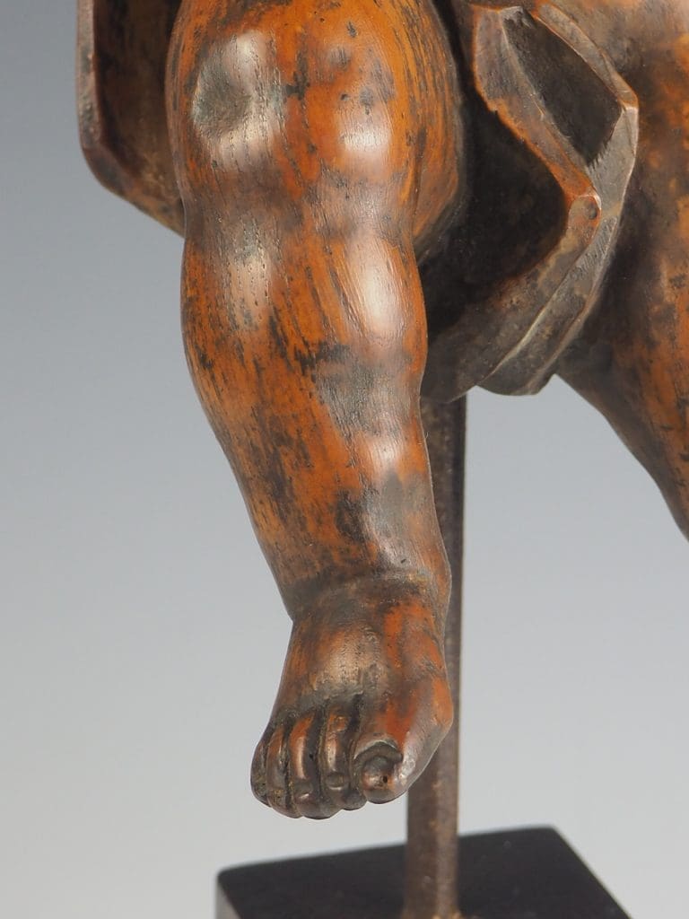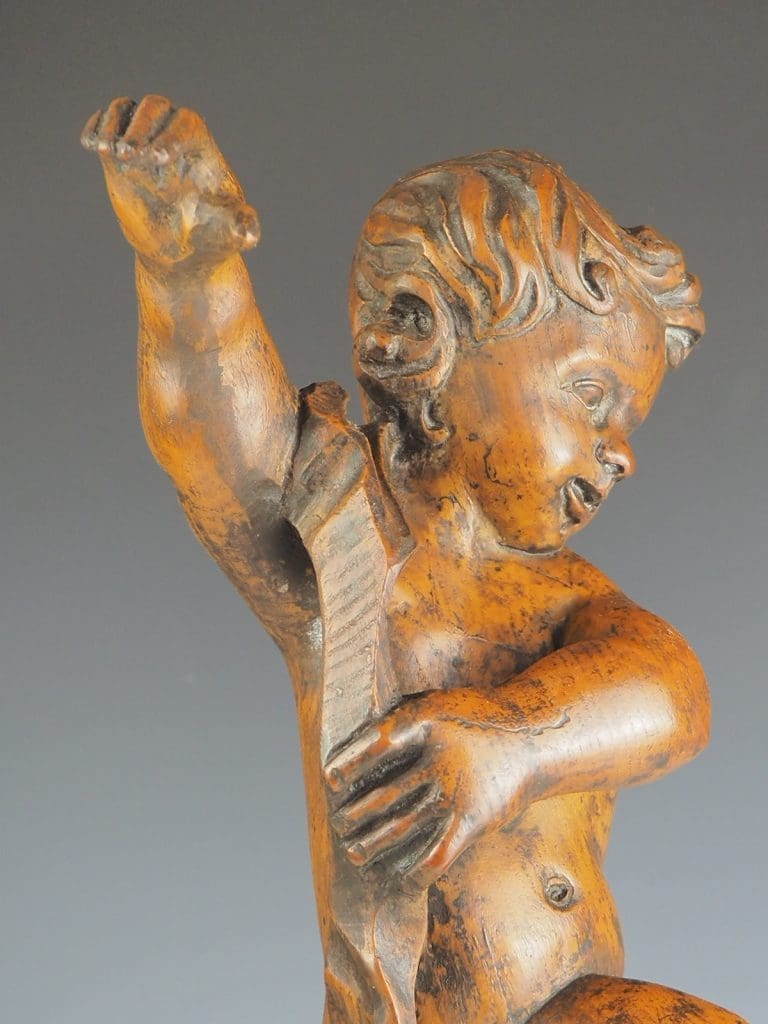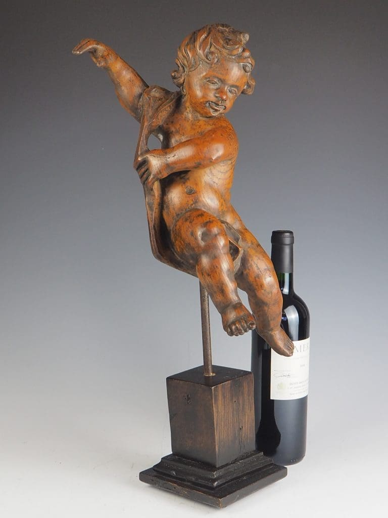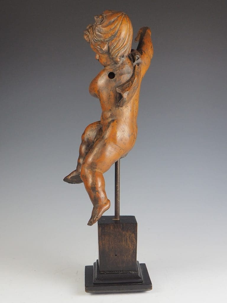 Putti with attractive and natural-looking face, carved in natural lime wood