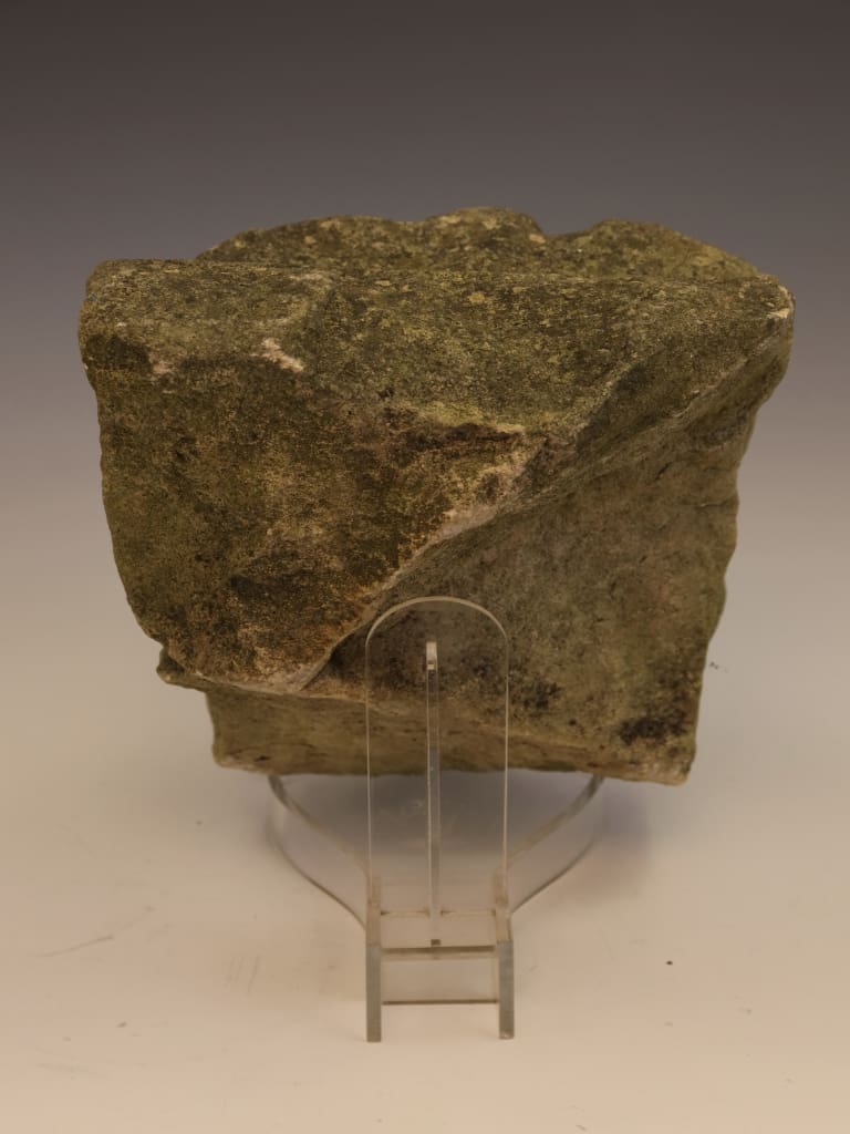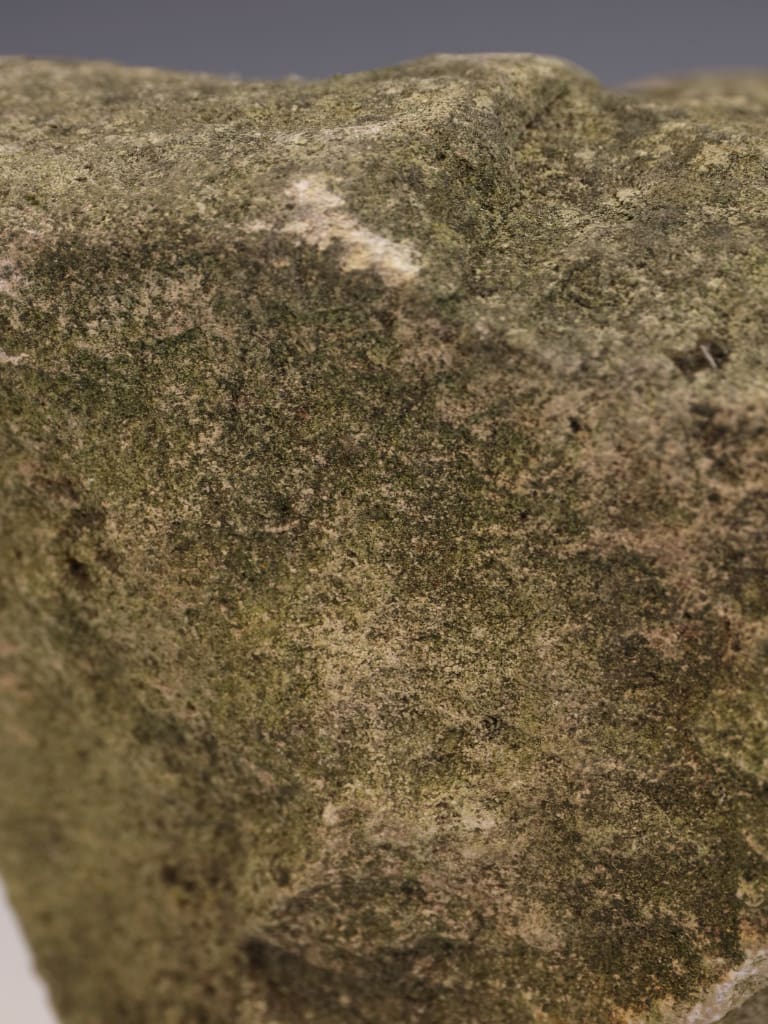 Magnificent weathered condition. Features have been softened by centuries of exposure, resulting in an authentic "Country House" patina. Structurally sound with expected losses to the rear and edges where the piece was originally keyed into the masonry wall. Retains traces of dried lichen in the deeper recesses of the carving, adding to its archaeological appeal.