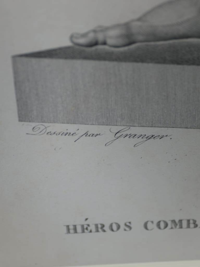 This striking engraving represents a "Heroic" study of the Borghese Gladiator, an iconic Hellenistic marble sculpture. Published in Paris by Danlos Aîné, a well-known 19th-century print dealer, the work is a collaboration between the draughtsman Granger, the engraver Alexis Girardet, and the renowned master-printer Chardon Aîné.