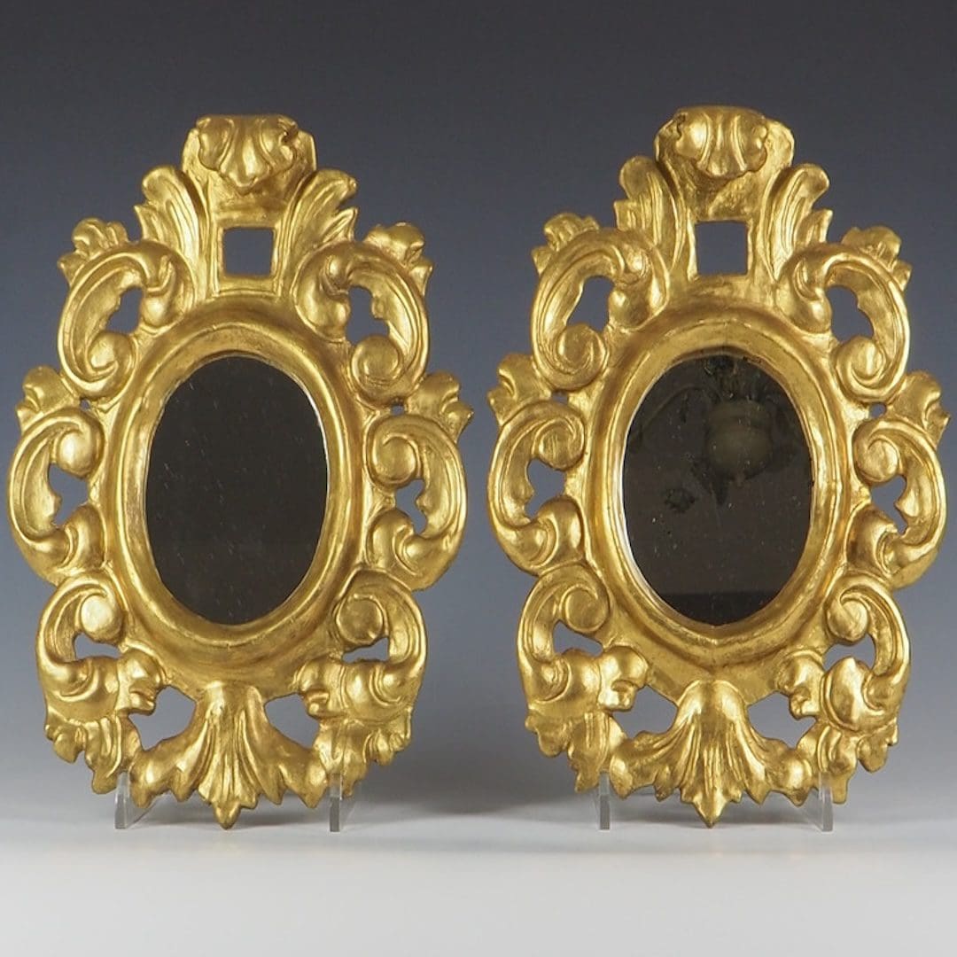 Each mirror showcases meticulous craftsmanship, featuring intricate carvings and ornate detailing that reflect the opulence of Venetian design.