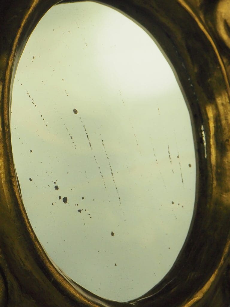 The mirror plates show some foxing, which is a natural occurrence over time and only enhances the antique appeal. Despite these minor imperfections, the overall quality and functionality of the product remain excellent.