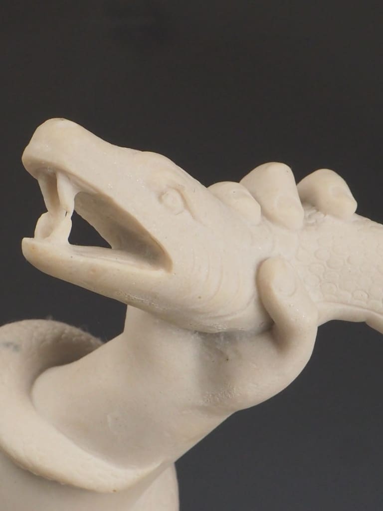 All sculptural details, including the serpent forms, facial features, and plinth reliefs, are crisp and well-defined.