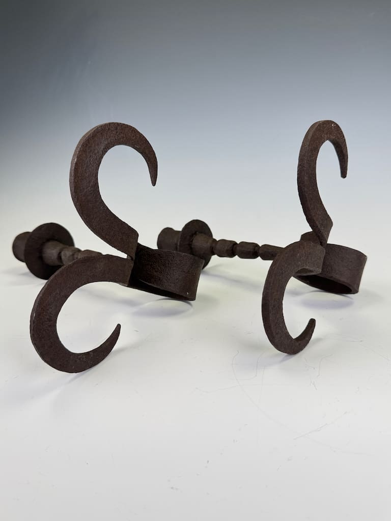 These utilitarian yet remarkably sculptural forms exemplify the rustic sophistication of Flemish ironwork in the Baroque tradition, where even the most functional objects were imbued with grace and balance. The surface retains a beautifully mottled dark patina consistent with centuries of use and exposure, offering a rich testament to their age and authenticity.