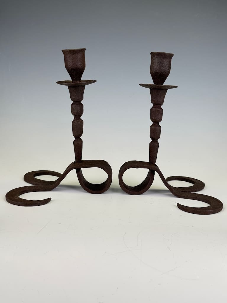 Rare Pair of 18th Century Flemish Hand-Forged Iron Candle Holders