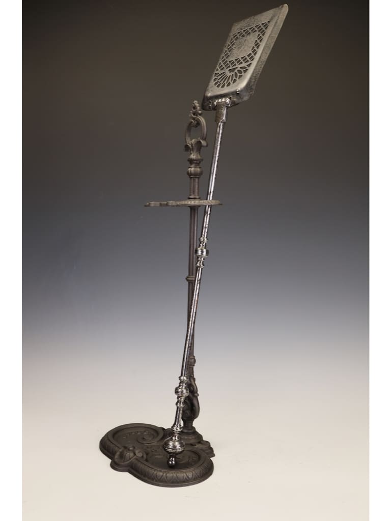 The stand retains its appealing original or professionally restored black finish, which has developed a rich, age-appropriate patina consistent with over a century of use, adding depth and genuine period character.