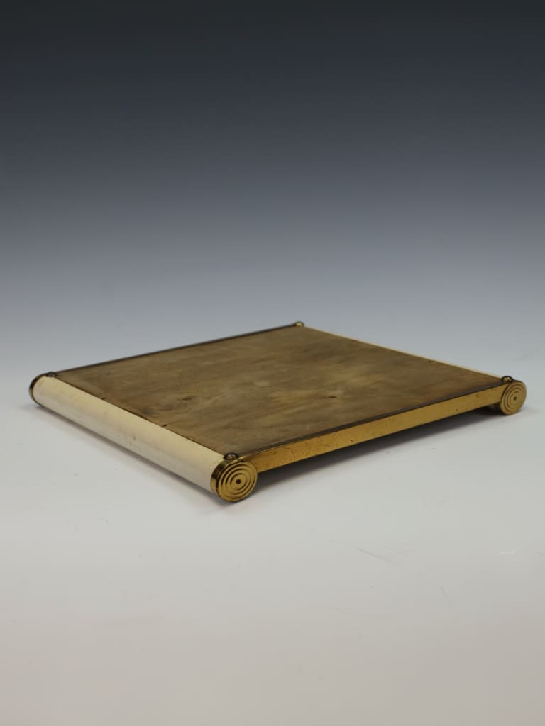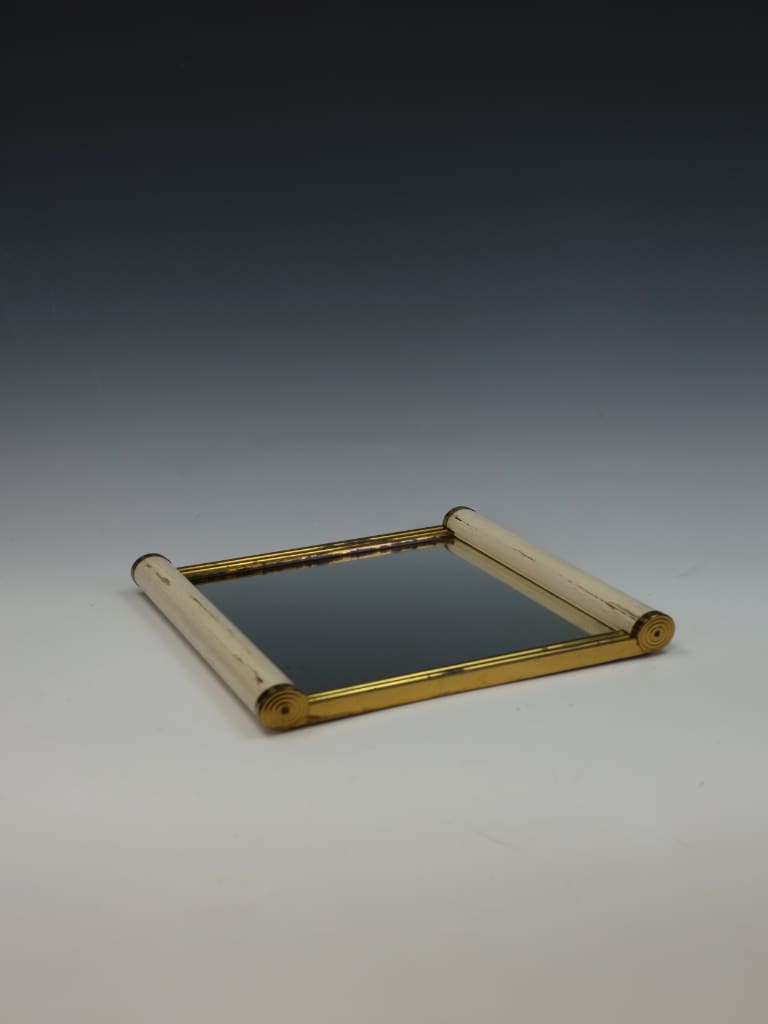The tray is in good antique condition for its age. The glass retains its original clarity with no signs of "sick" or cloudy glass. As is correct for a piece of this vintage, there is light, honest "shelf-wear" to the underside of the base, confirming its history. There are no significant chips, cracks, or restorations to the rim or surface.