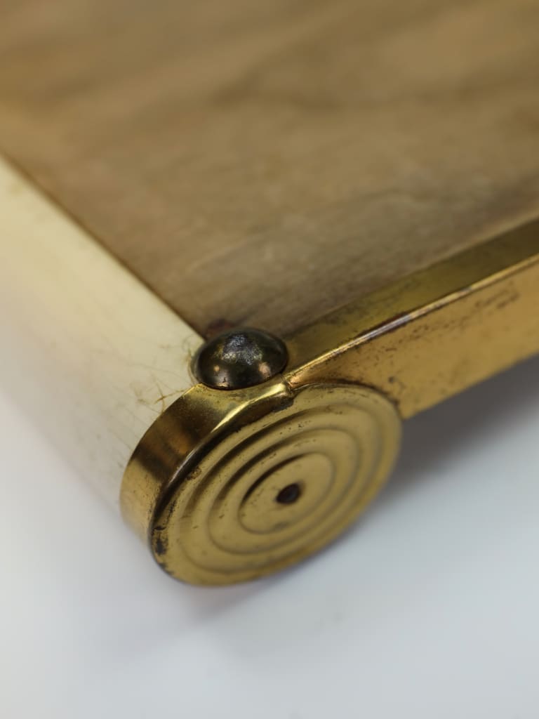 During the late 19th century, the "toilette" was an elaborate ritual. A tray of this quality would have been the centerpiece of a larger set, protecting the polished mahogany or satinwood of a lady's dressing table from the alcohol found in early perfumes and "toilet waters."