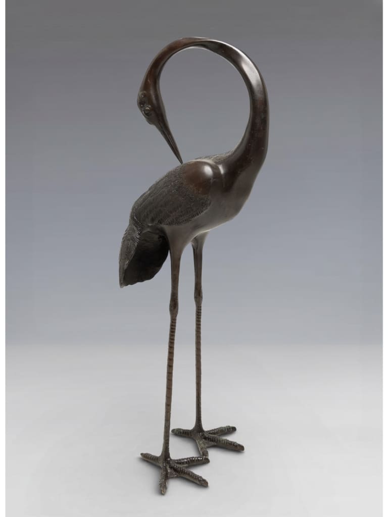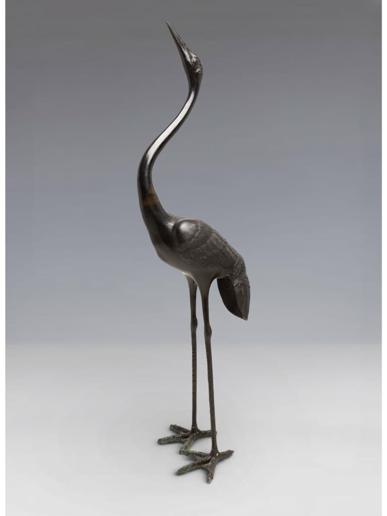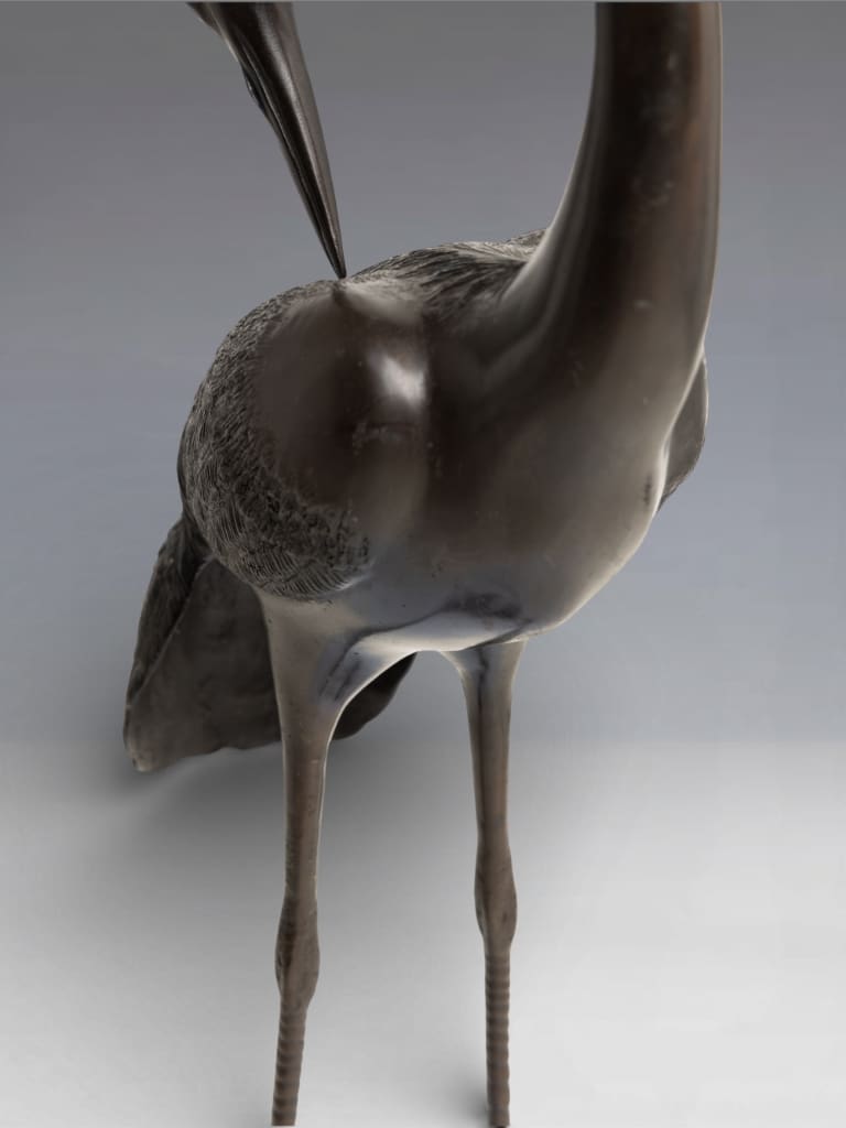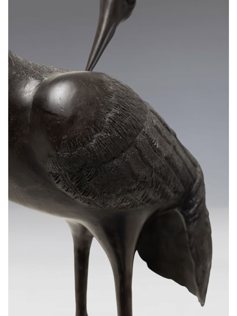 In Japanese culture, the crane (tsuru) is a sacred symbol of longevity and fidelity, believed to live for a thousand years. Such large-scale bronzes were often intended for the luxurious gardens or grand entrance halls of the Japanese elite.
