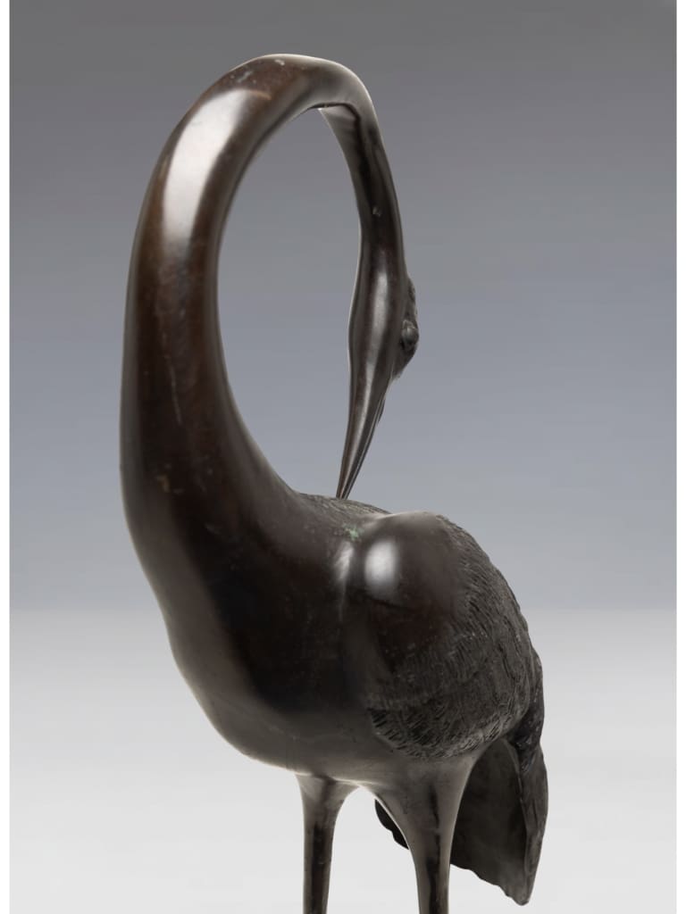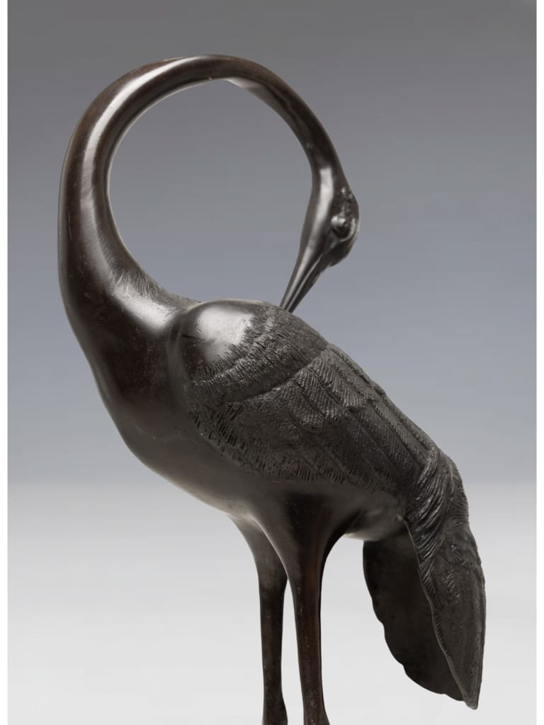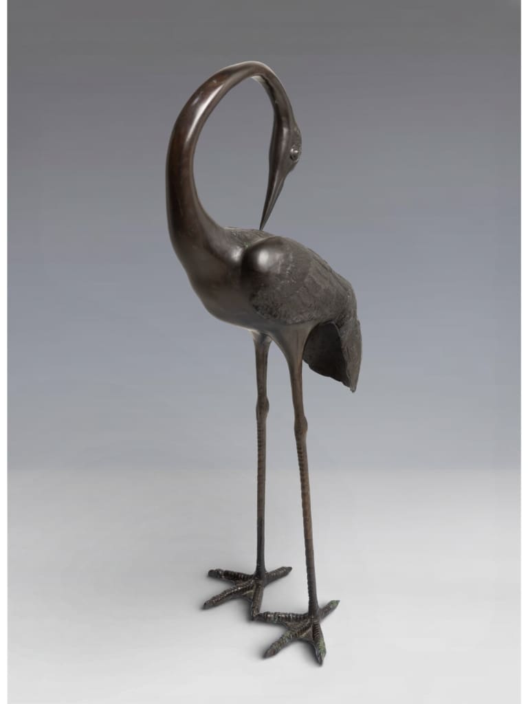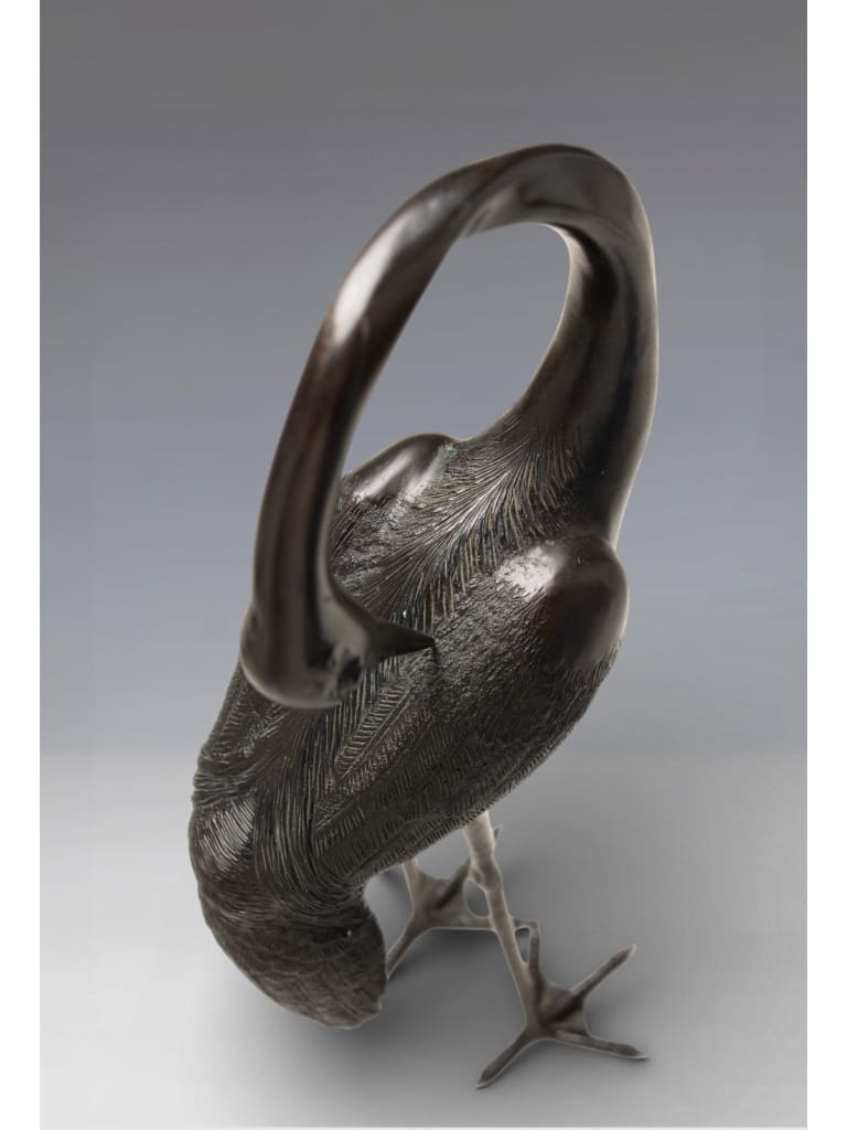 In Japanese culture, the crane (tsuru) is a sacred symbol of longevity and fidelity, believed to live for a thousand years. Such large-scale bronzes were often intended for the luxurious gardens or grand entrance halls of the Japanese elite.