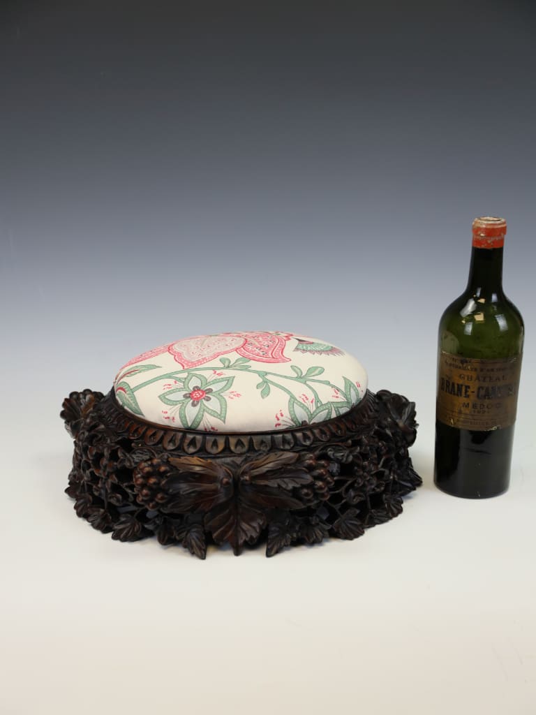 In the grand Victorian interior, such a stool was a "mobile luxury." Its heavy, legless apron construction suggests it was designed to be a "jewel" in a formal drawing room or a lady’s boudoir.