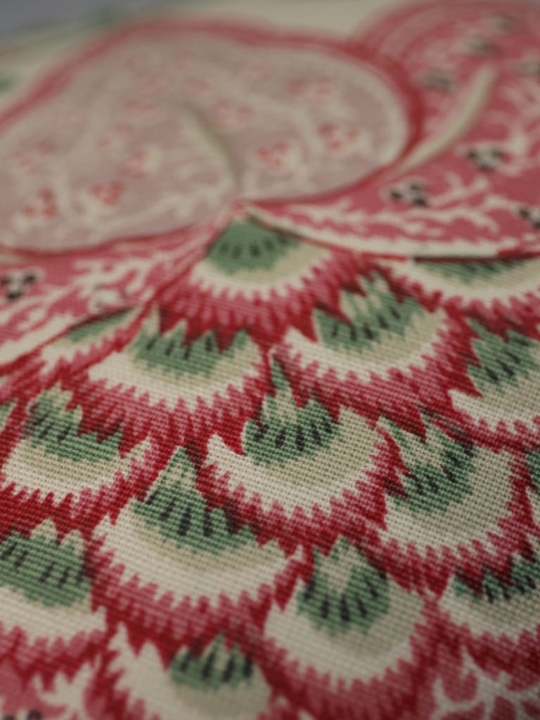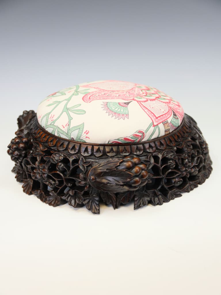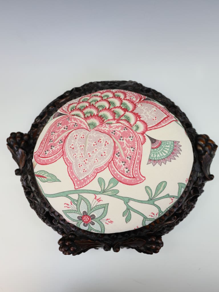 The fabric has been meticulously "centre-matched" so that the most beautiful floral elements of the print are perfectly poised atop the stool, ensuring the piece looks magnificent from every angle.