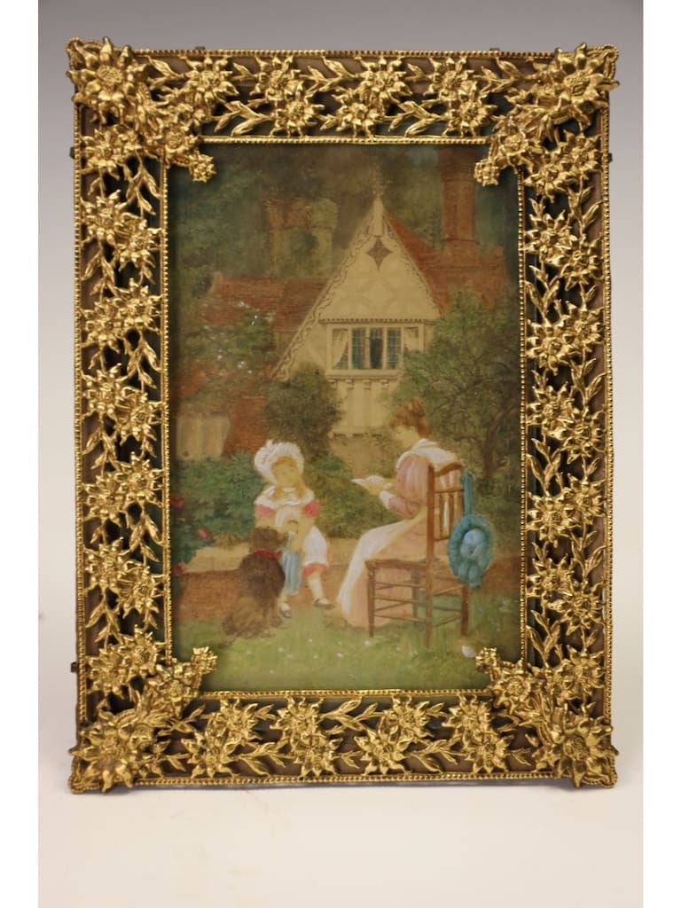 This is a well-preserved and attractive pair that presents very well. The combination of the exceptional Aesthetic Movement frames and the charming, well-kept sentimental images offers a highly decorative and collectable item.