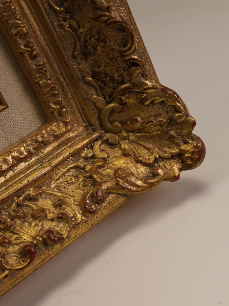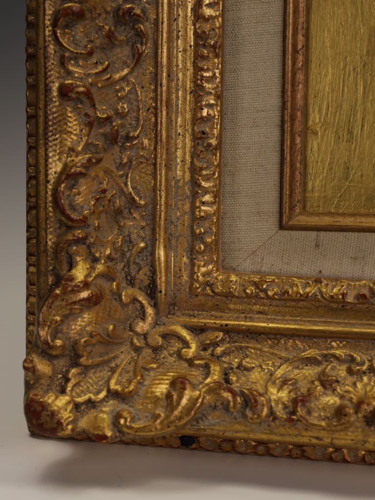 Housed in an ornate gilt frame that perfectly complements the work’s sophisticated palette and composition.