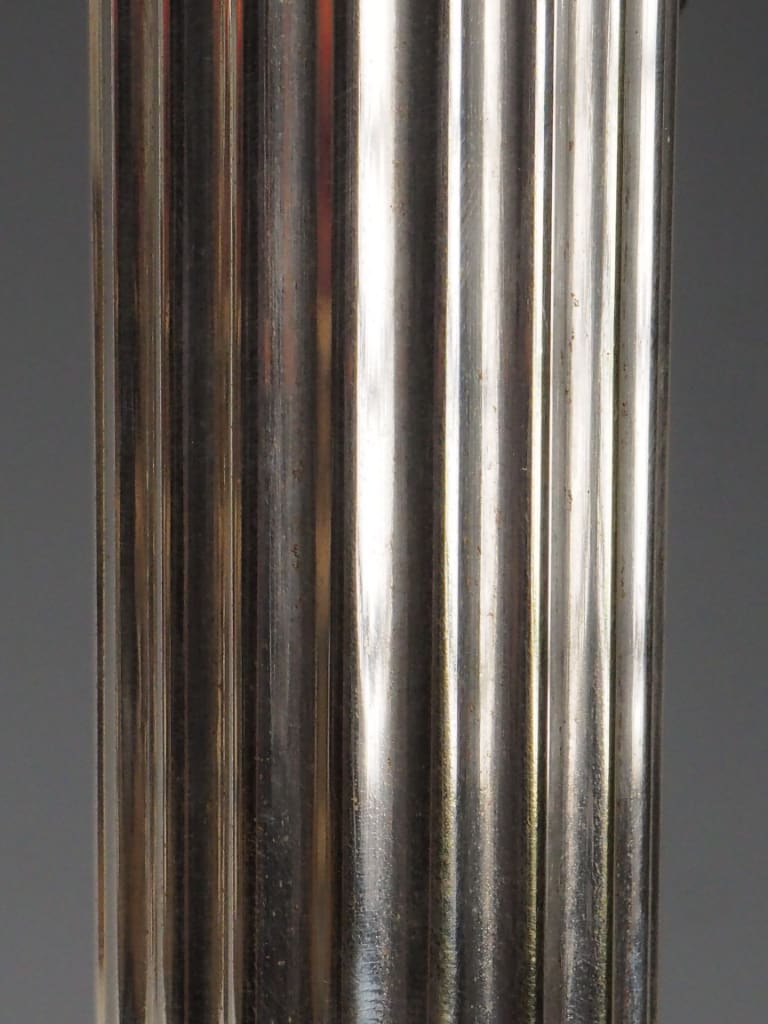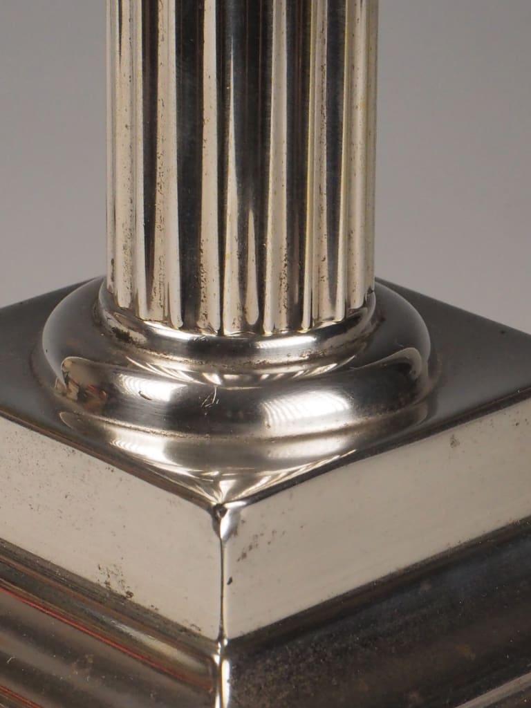 Silver-plated Corinthian column with fluted shaft and stepped base