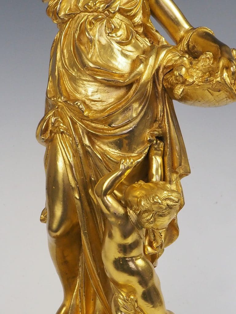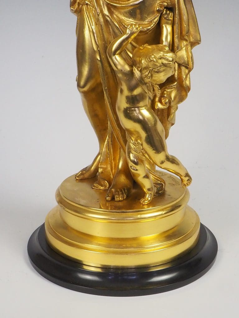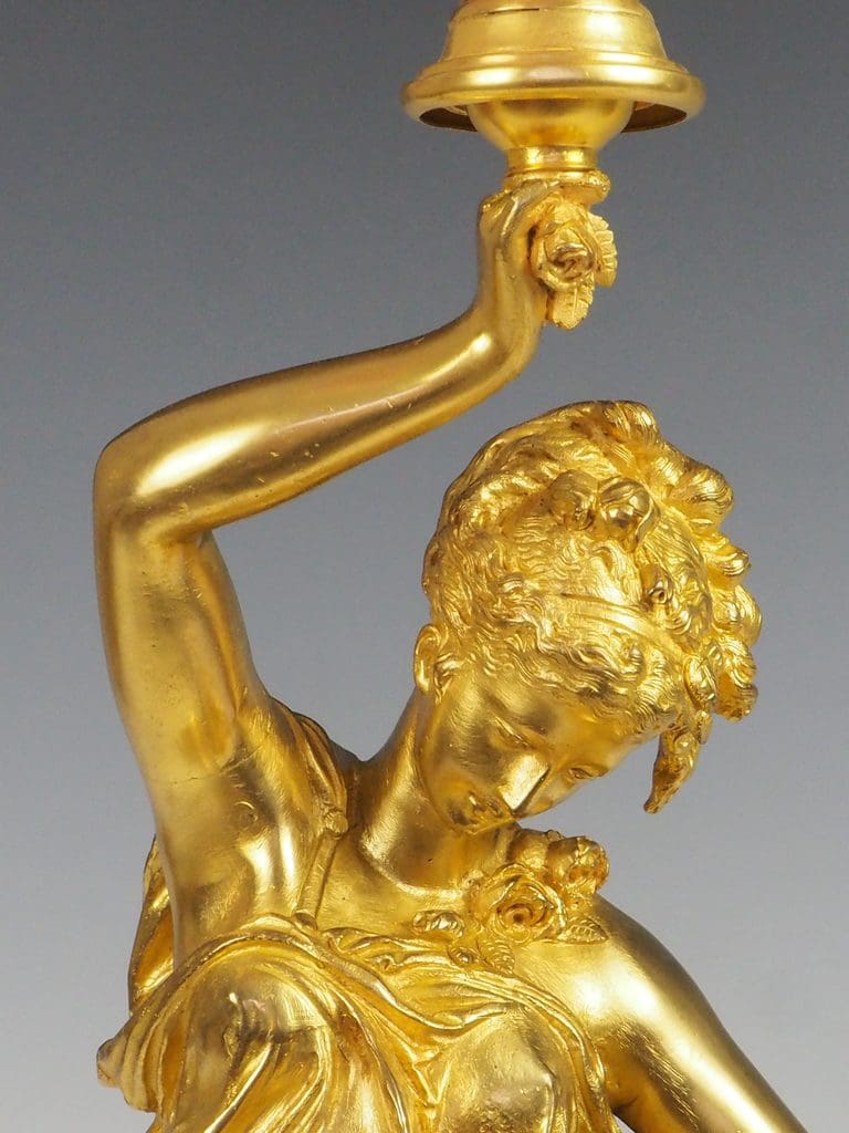 Antique Carrier-Beluese Gilt Bronze Lady Oil Lamp Signed