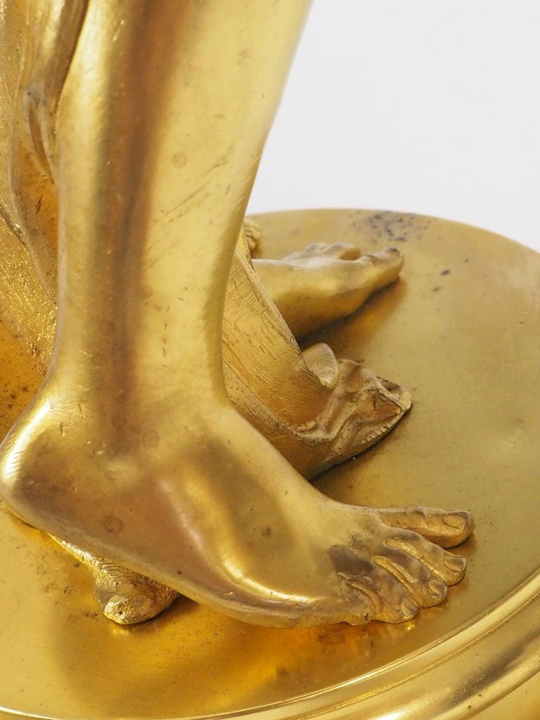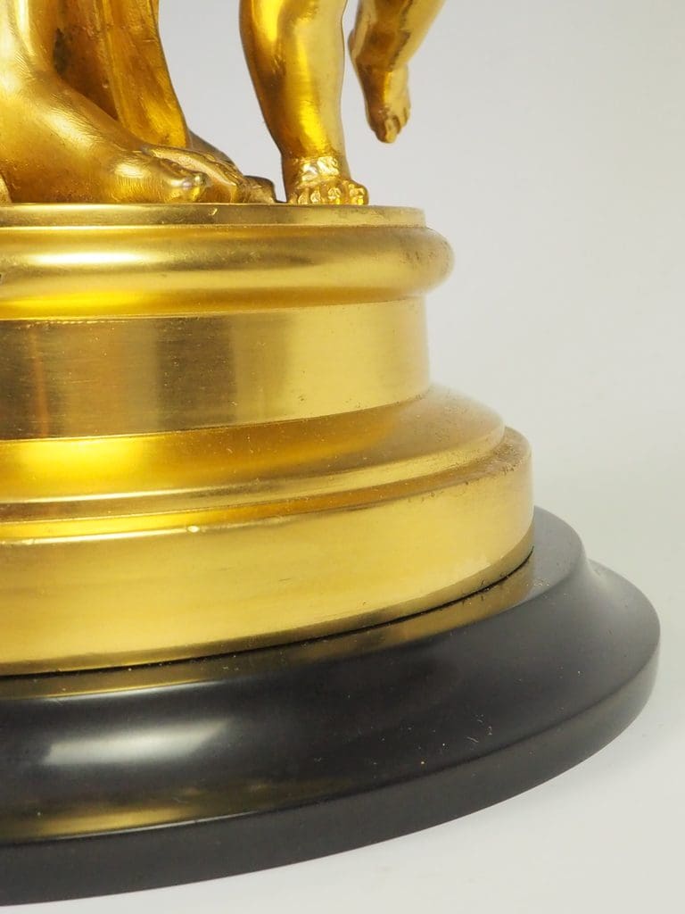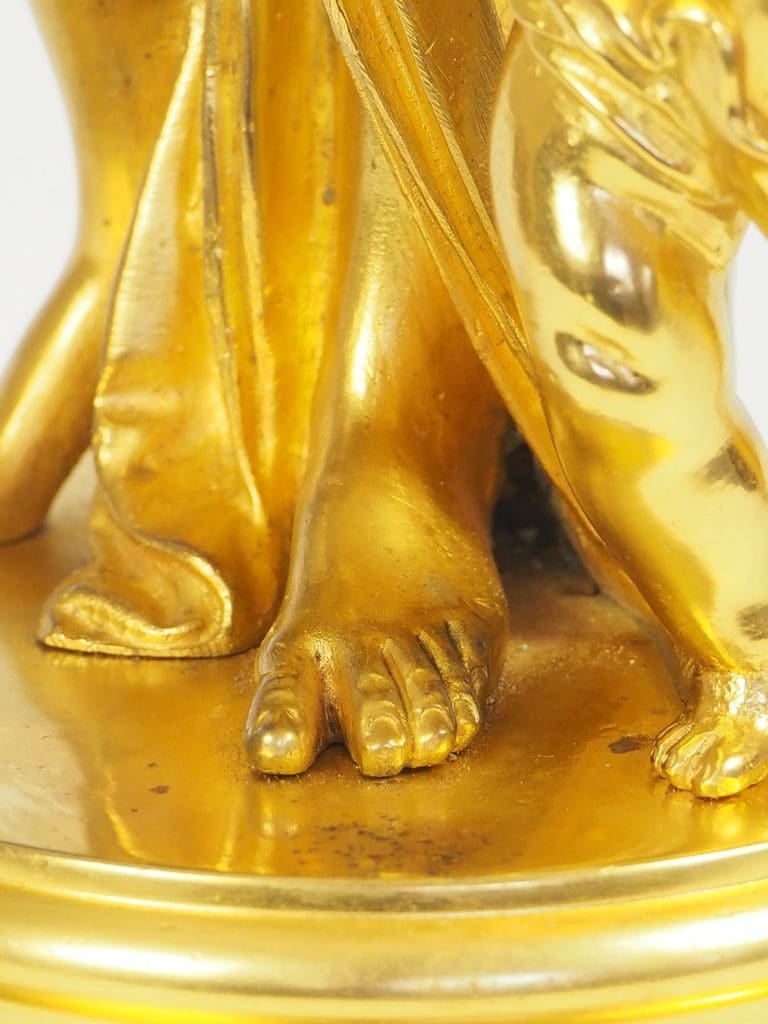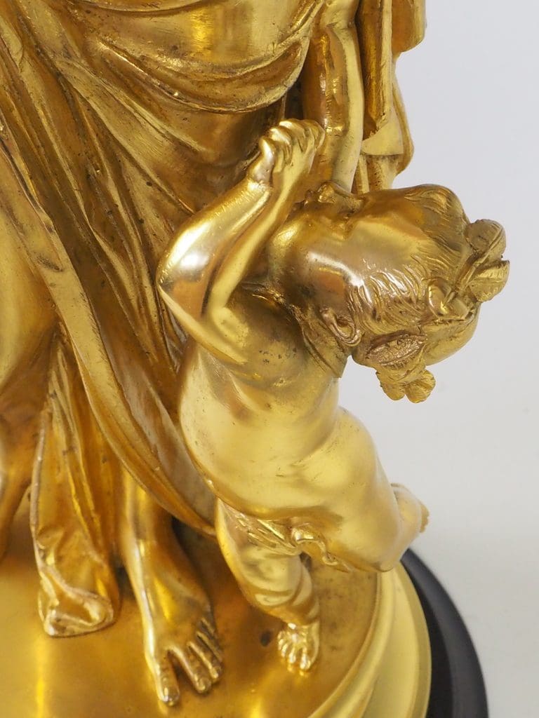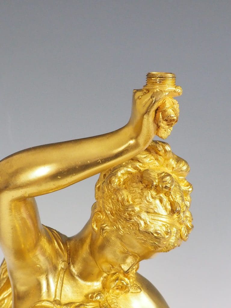 The lamp remains a visually stunning and structurally sound piece. Its gilt bronze finish showcases a rich patina, adding character and authenticity while retaining its elegance.