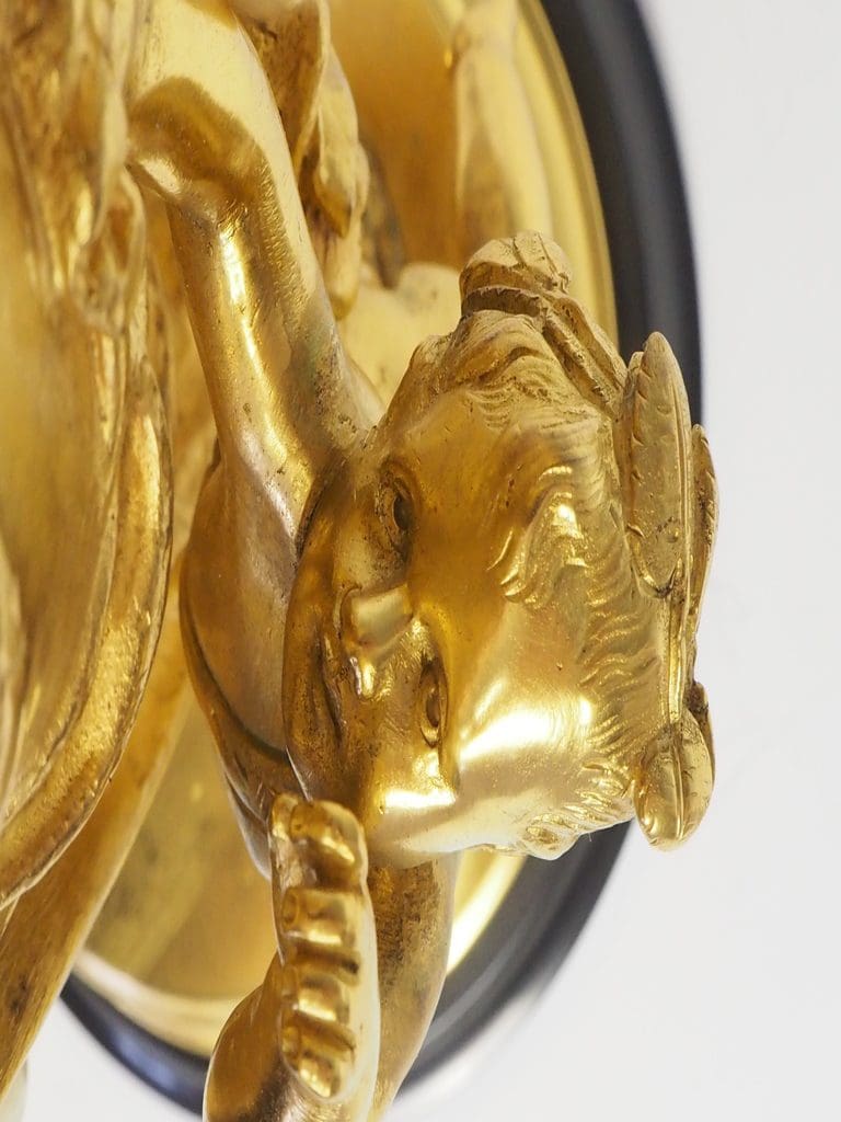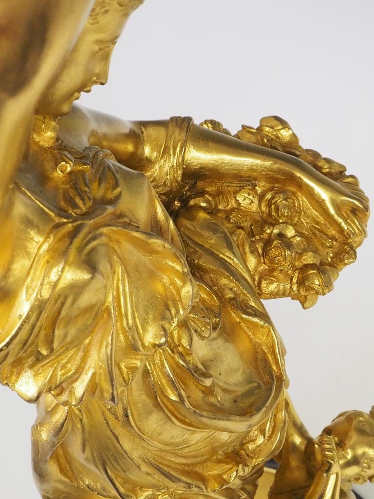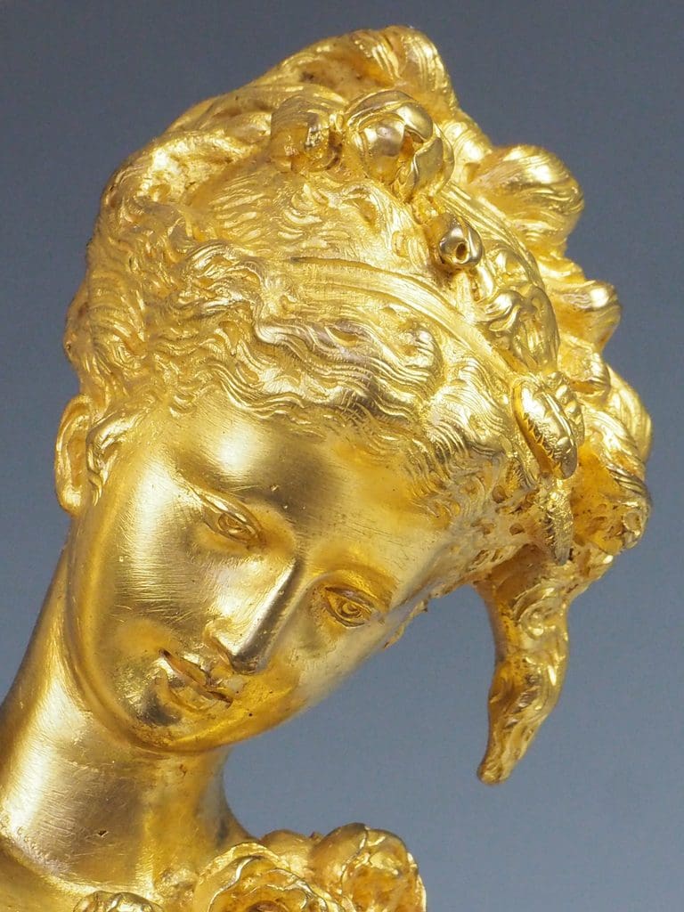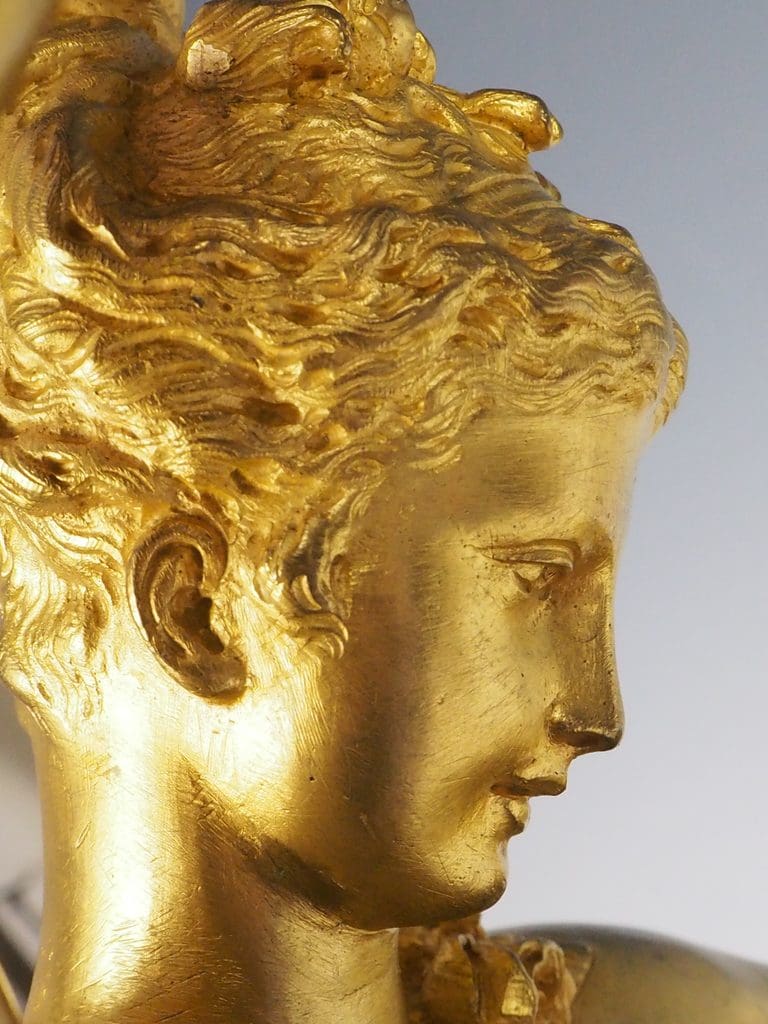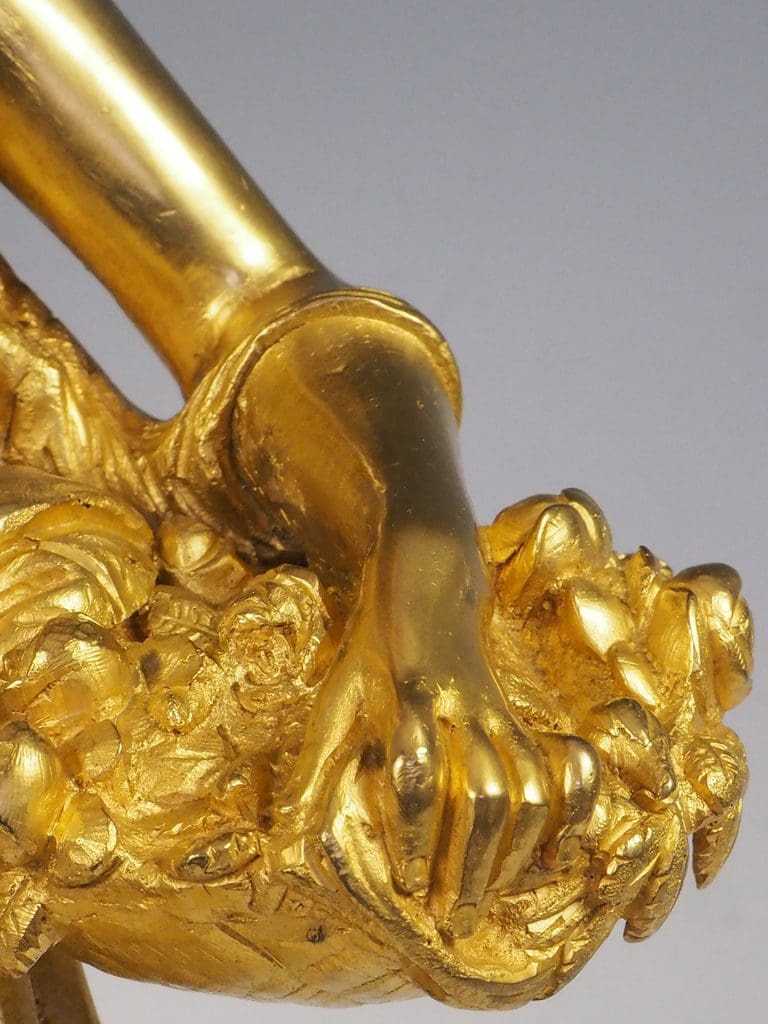 The lamp remains a visually stunning and structurally sound piece. Its gilt bronze finish showcases a rich patina, adding character and authenticity while retaining its elegance.