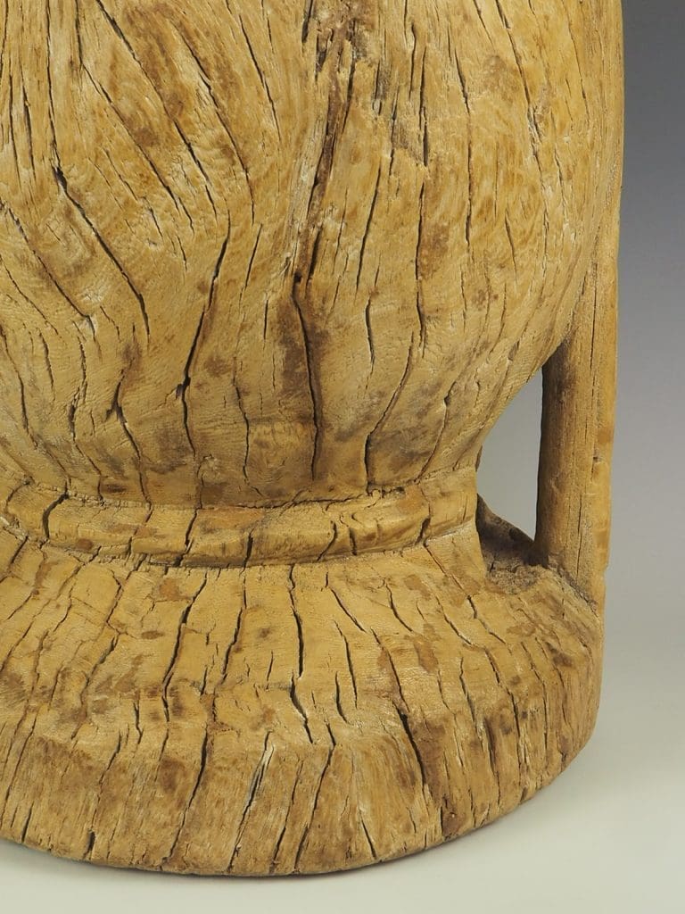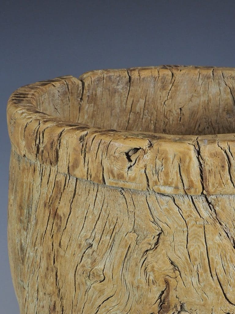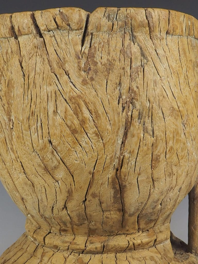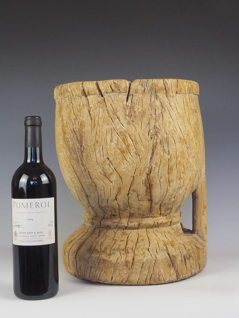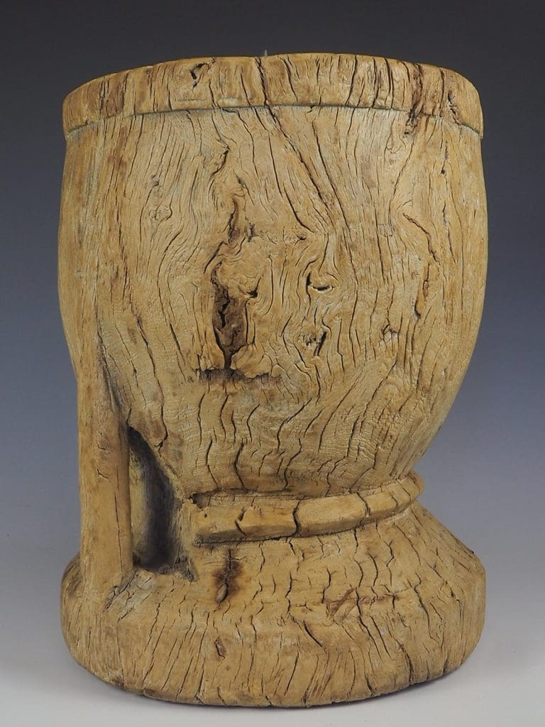 19th century hand carved large wooden Elm mortar or grain bowl. Carved from a solid piece of Elm,