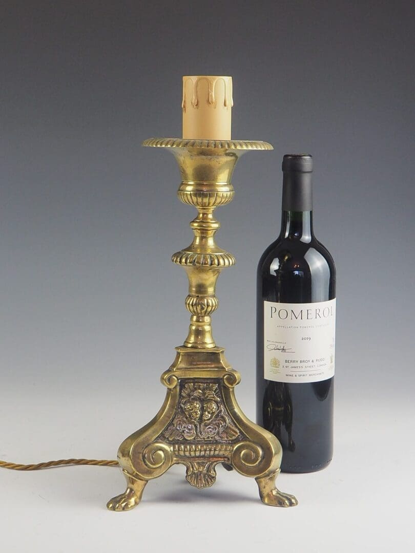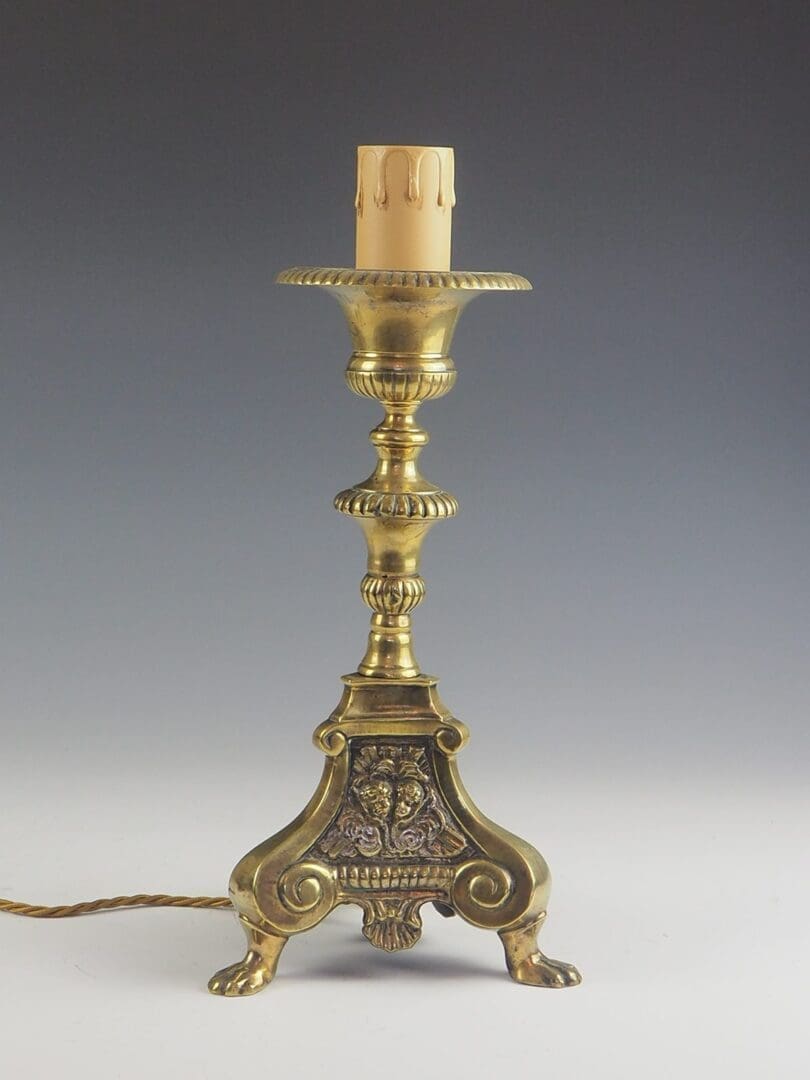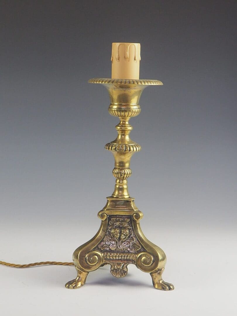Antique French Church Altar Candlestick Table Lamp