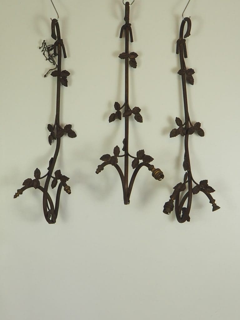 Antique Gas Ornate Rose Stem Wall Lights for Renovation Set of 3