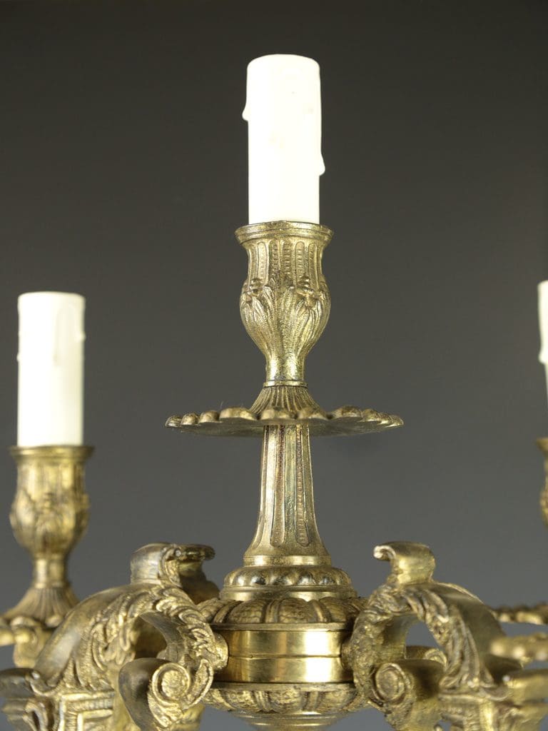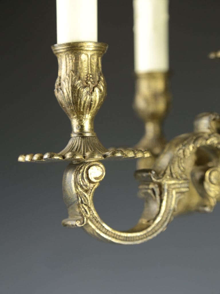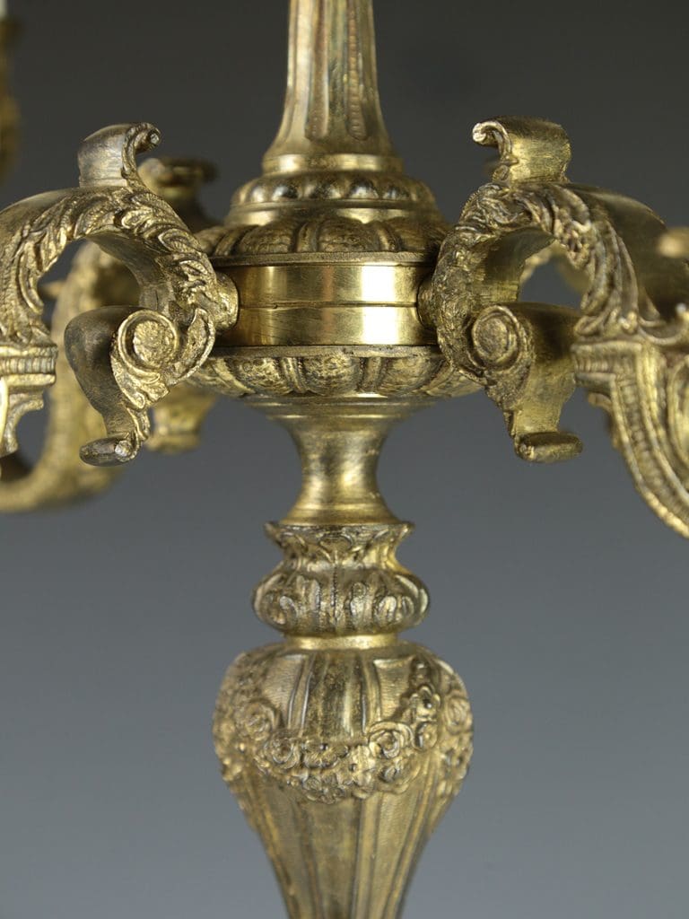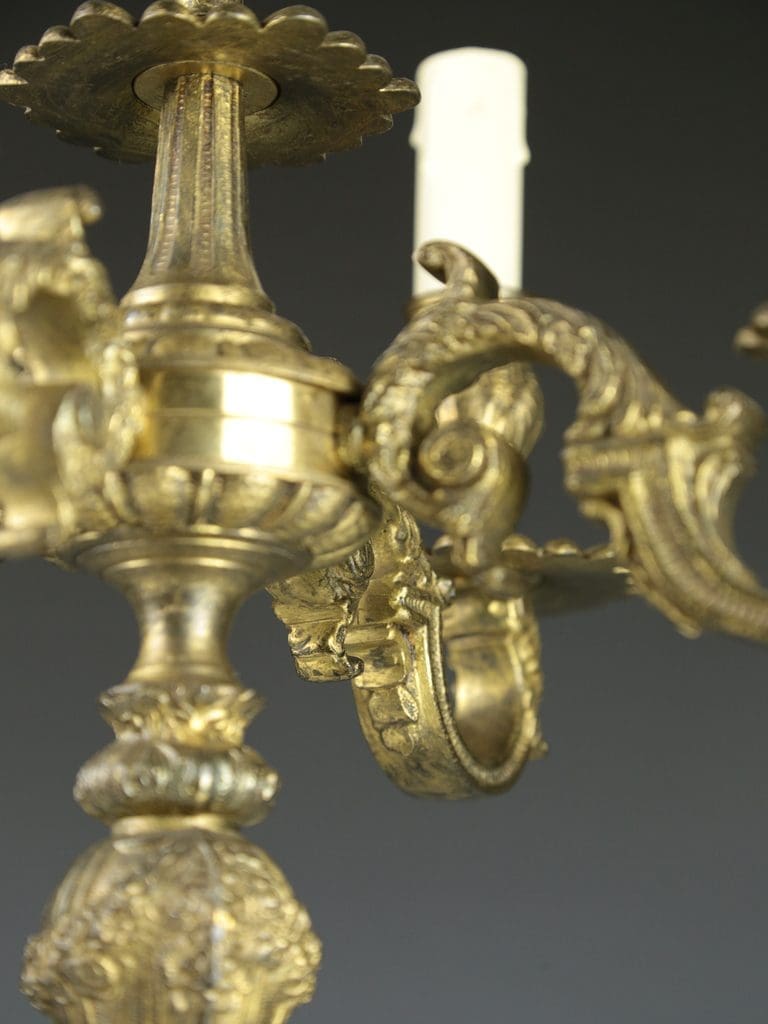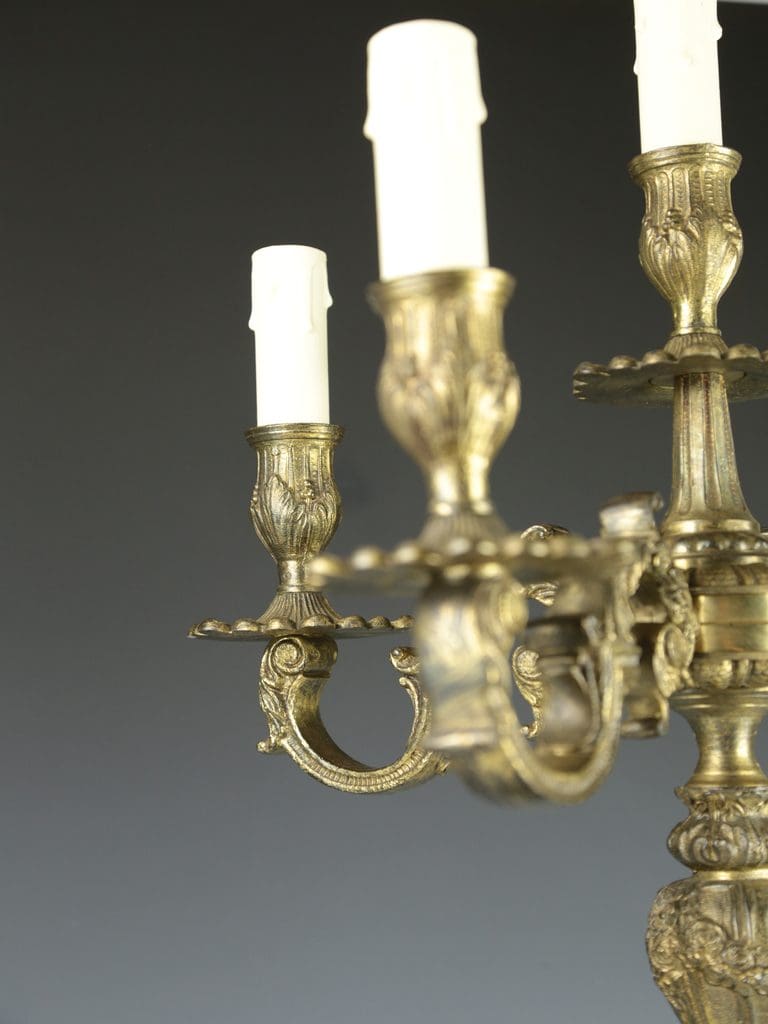 This lamp features a harmonious five-arm design with four elegant branches and a central arm, providing both decorative charm and functional lighting. It is a captivating addition to any interior, offering a fusion of historical artistry and practical illumination.