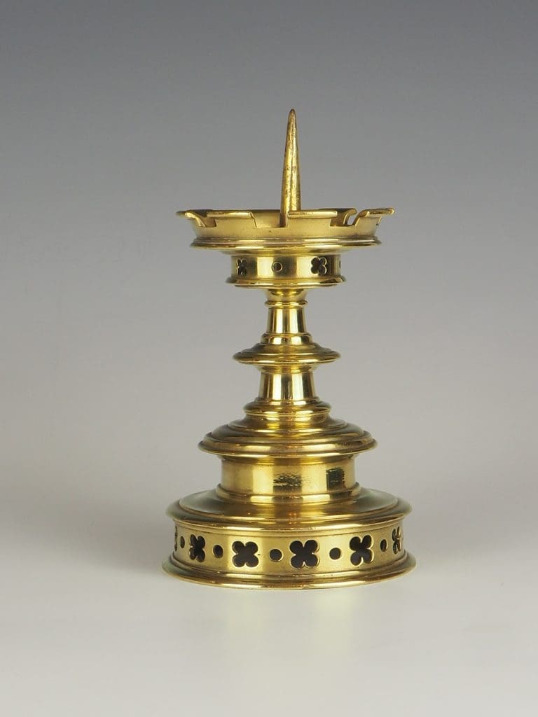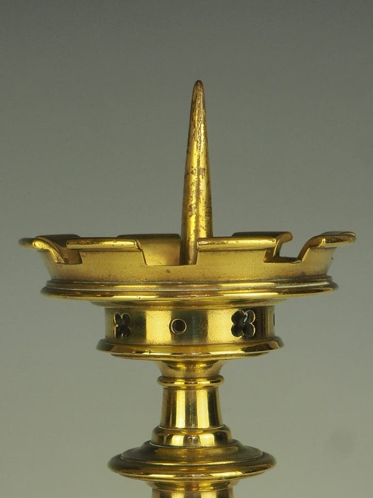 Antique Gothic Revival Brass Candlestick
