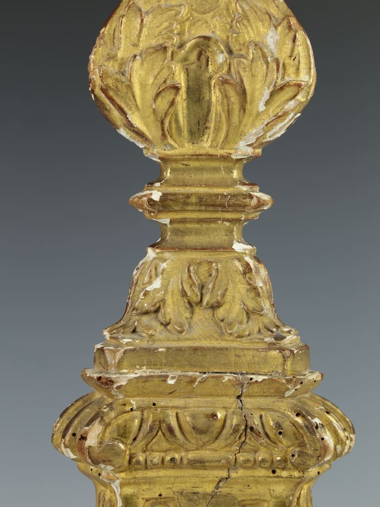 Antique Italian Altar Hand-Carved Giltwood Candlestick