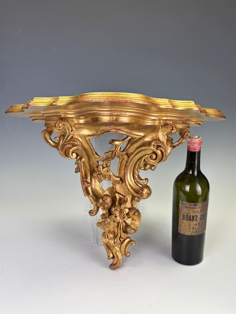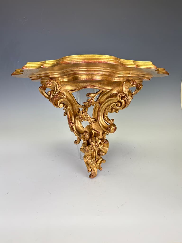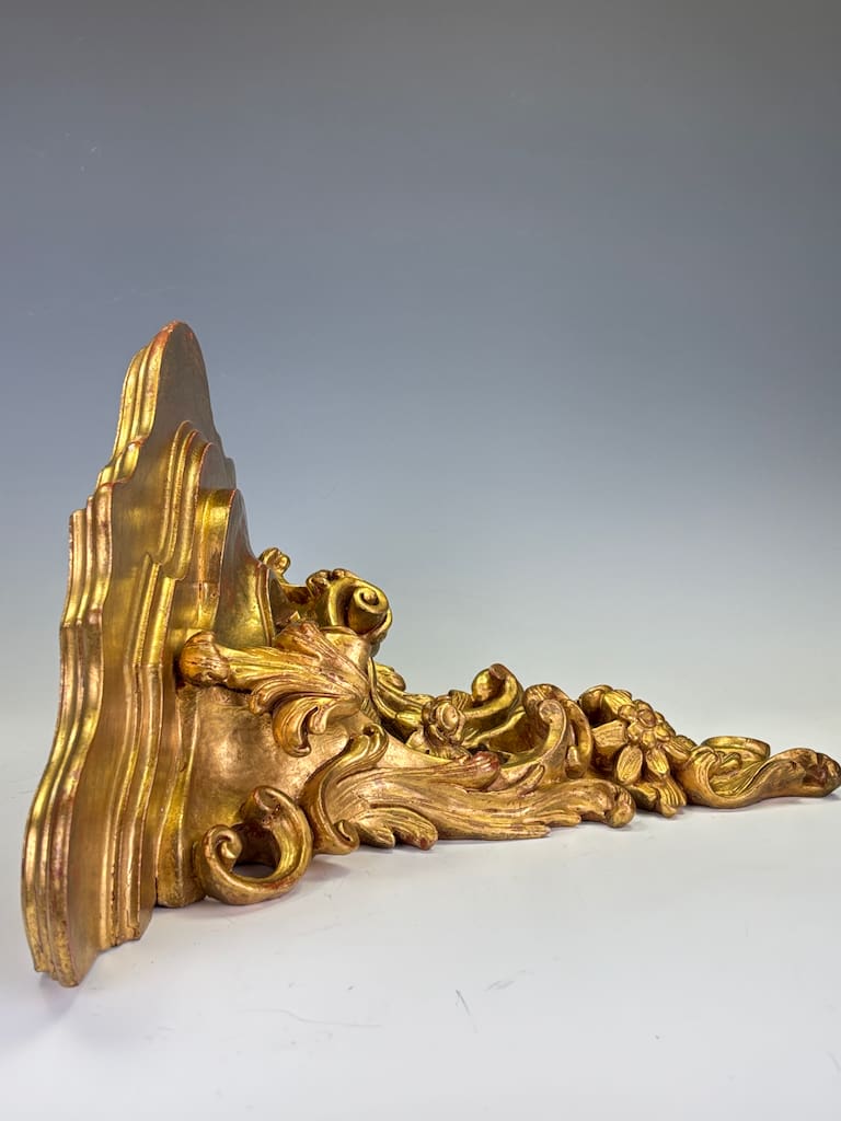 The Rococo Revival, particularly popular in Italy and France from early 20th, embraced the playful curves, asymmetry, and naturalistic ornamentation of the original 18th-century style. This bracket demonstrates the period’s craftsmanship at its best: lively, exuberant, and highly decorative, designed to bring elegance and movement to an interior wall.