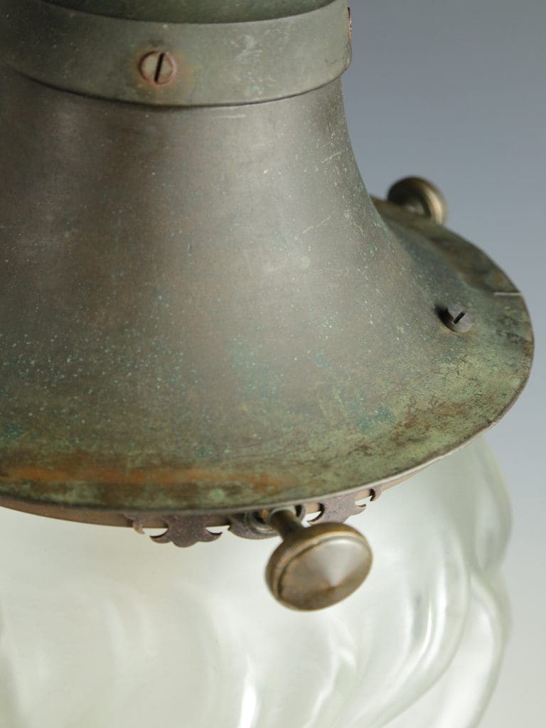 The flame globe is intact and well-preserved, with no cracks or chips.
