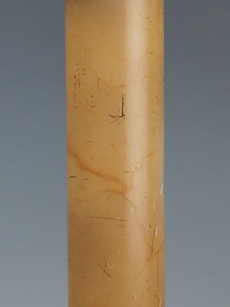 The stepped brass base is intact and stable, with minor surface wear and a natural patina that underscores its antique provenance.