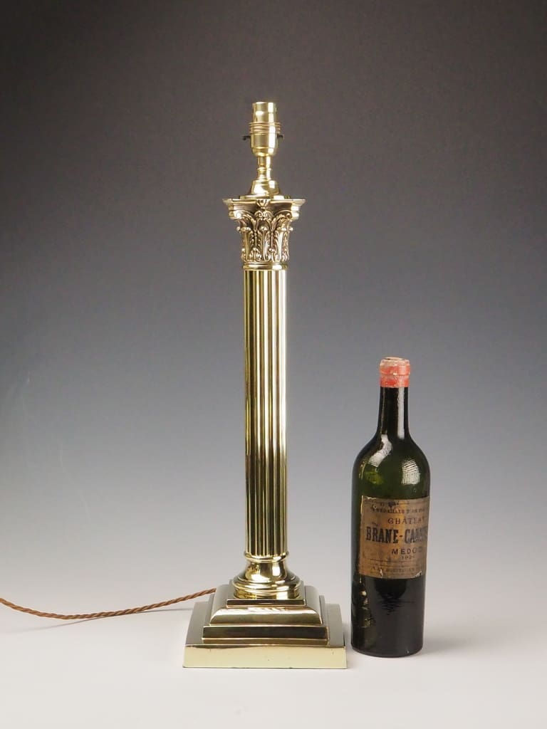 Exquisite Neoclassical brass Corinthian columnar table lamp stands as a stunning example of late 19th-century opulence and refined artistry. Originally crafted to house an oil lamp, it has been expertly adapted to modern living with an electric conversion, seamlessly blending antique elegance with contemporary convenience.