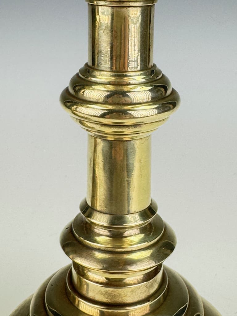 These were likely intended for ecclesiastical or formal domestic use, reflecting both the religious traditions and material richness of the Flemish region during the 1700s. The precise turning and balanced proportions demonstrate the high standard of Flemish brass craftsmanship, which was renowned throughout Europe during the 17th and 18th centuries.