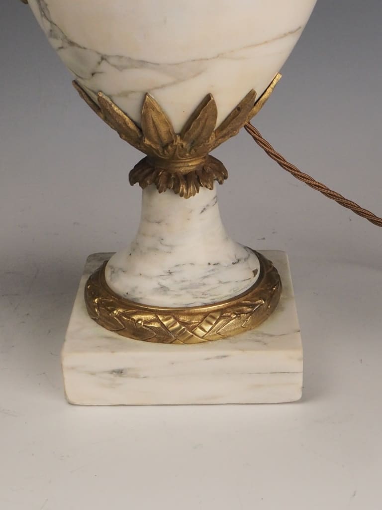 This elegant pair of antique French Louis XVI style cassolettes—converted into table lamps—is presented in very good antique condition, with only minor wear consistent with age.