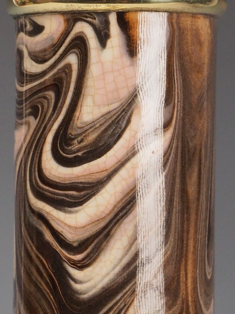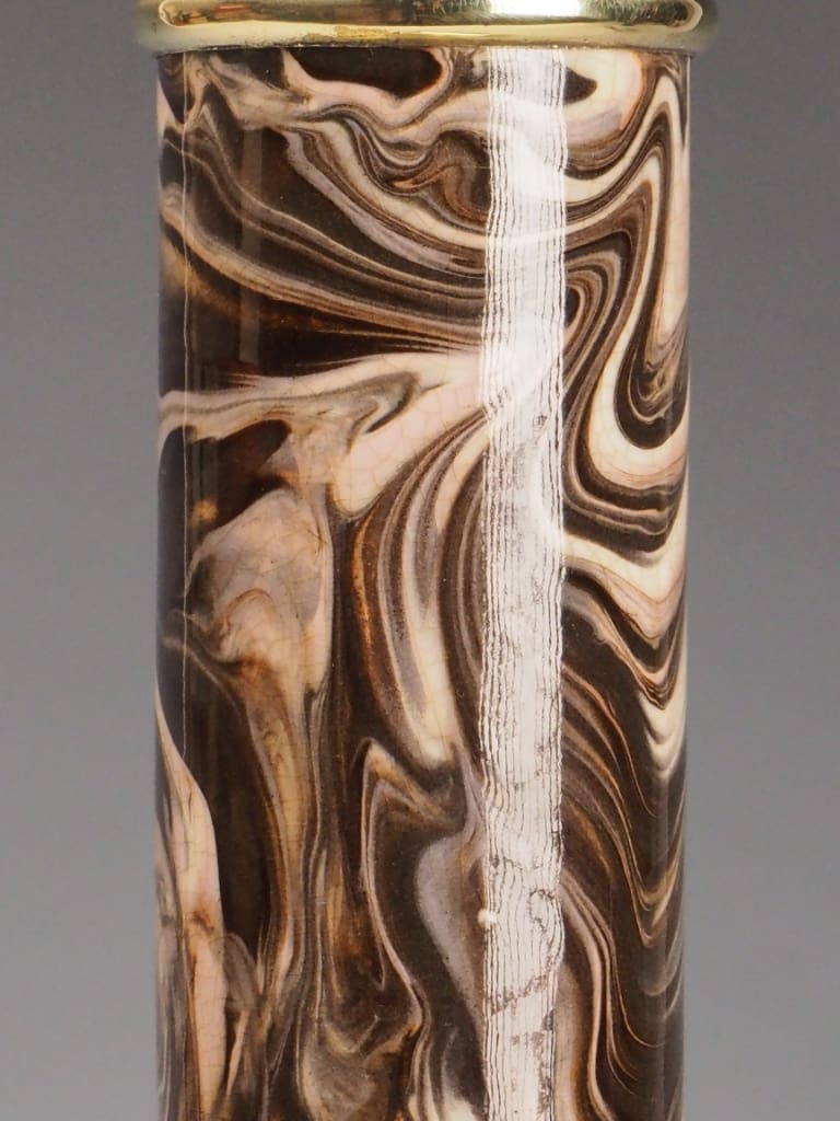 No chips, cracks, or visible restoration. Marble-effect glaze is clean, even, and visually striking with minor age-appropriate wear.