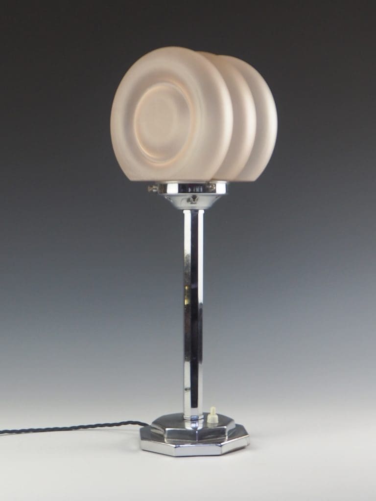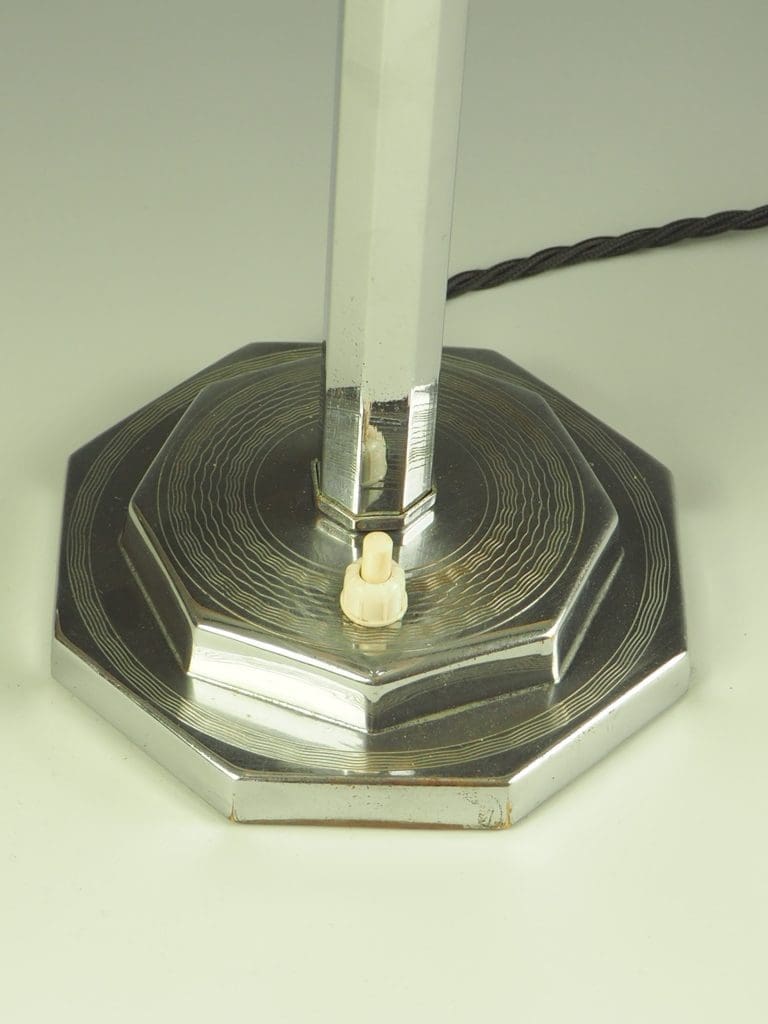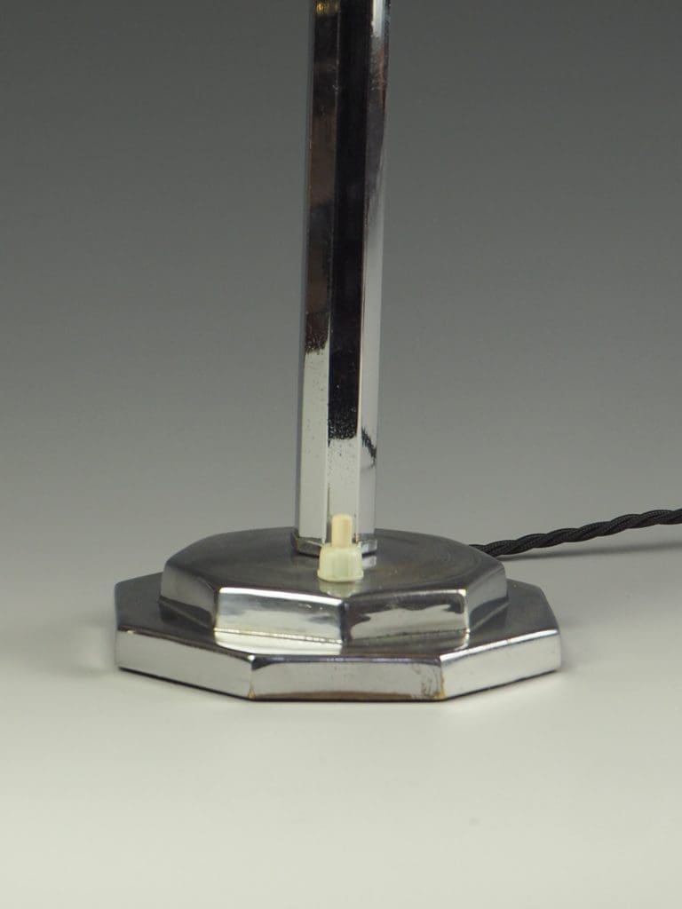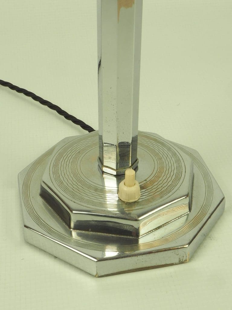 Collectible Art Deco Chrome was often made by Top Designers. During the 1920s and 1930s, chrome items were referred to as “poor man’s silver.” Never mind that some of it was made in the art deco decades by some of the most important designers of the era. From decorative accessories such as art deco lamps to everyday kitchen objects, it brightened the homes of young couples who couldn’t afford sterling silver and was a favorite wedding gift. In those days, most items cost only a few pounds/dollars.