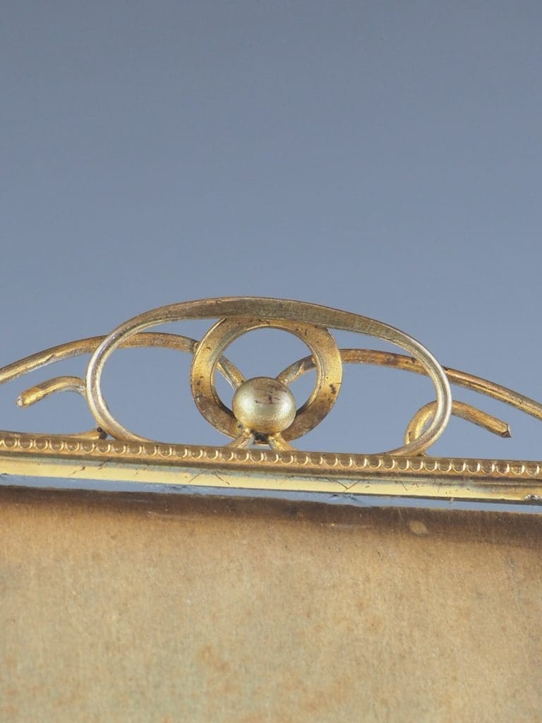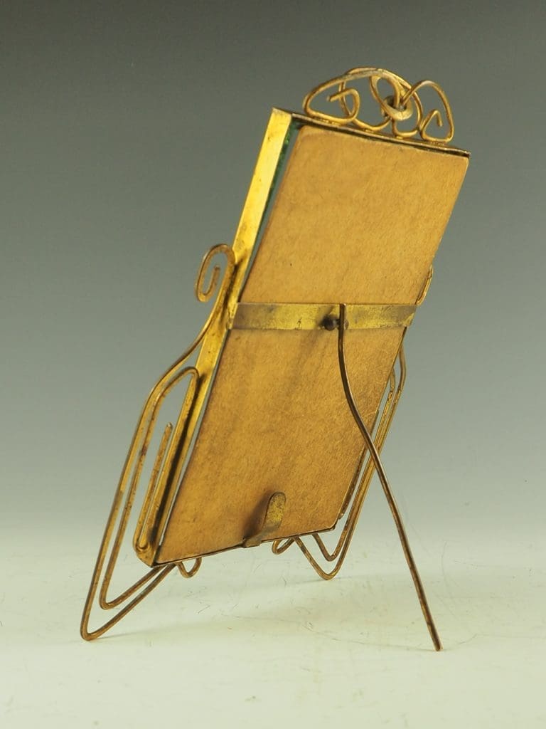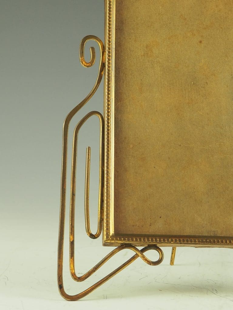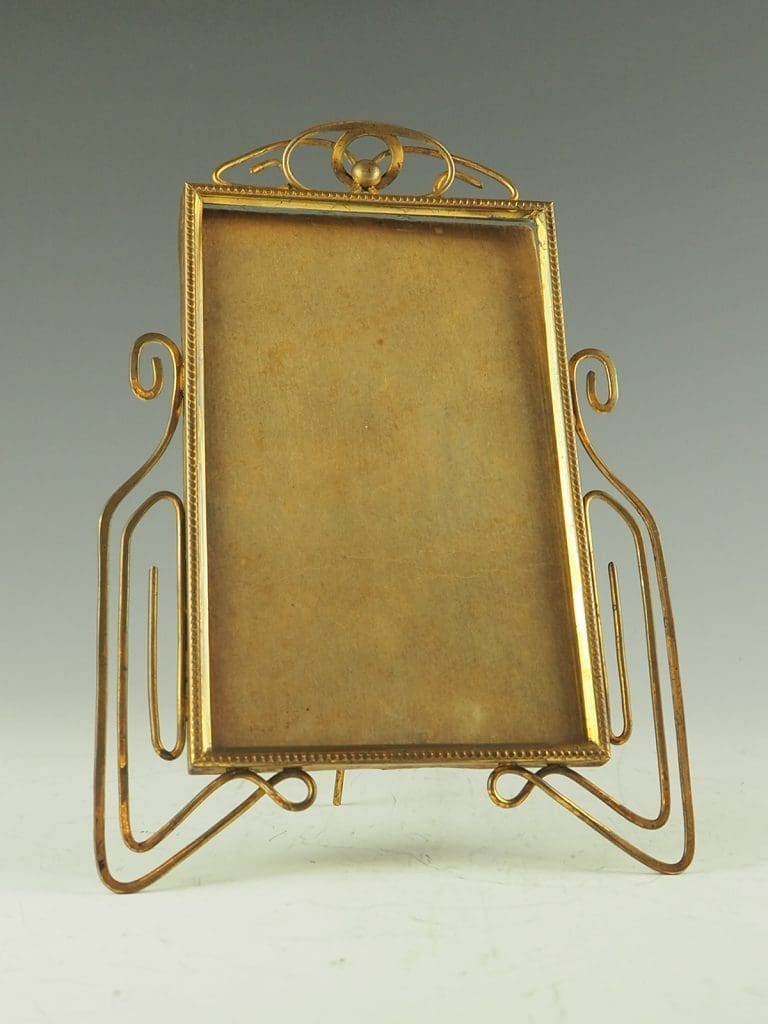Description Antique Art Nouveau 19th century brass photo frame The frame stands on a easel stand.