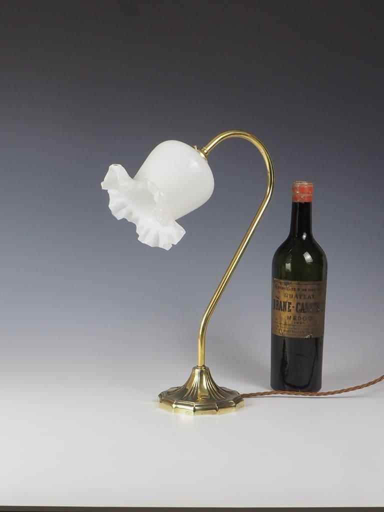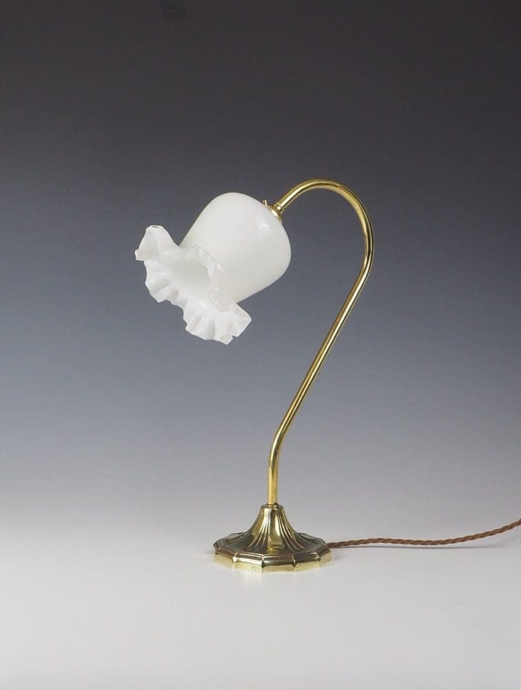 Enhance your space with the exquisite charm of our Elegant Art Nouveau Swan Neck Table Lamp with Shade. This stunning lamp effortlessly combines the beauty of Art Nouveau with practical functionality. Featuring an elegant brass swan neck gracefully rising from a symmetrical base, this lamp exudes timeless elegance.