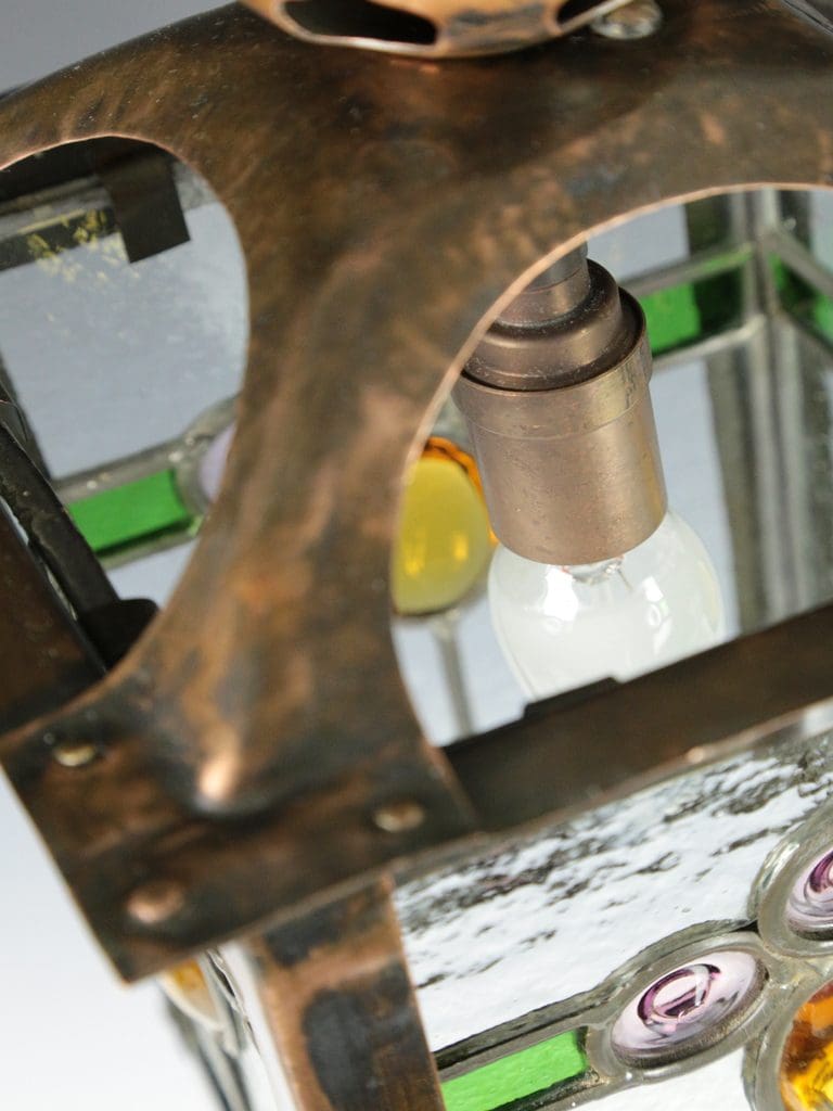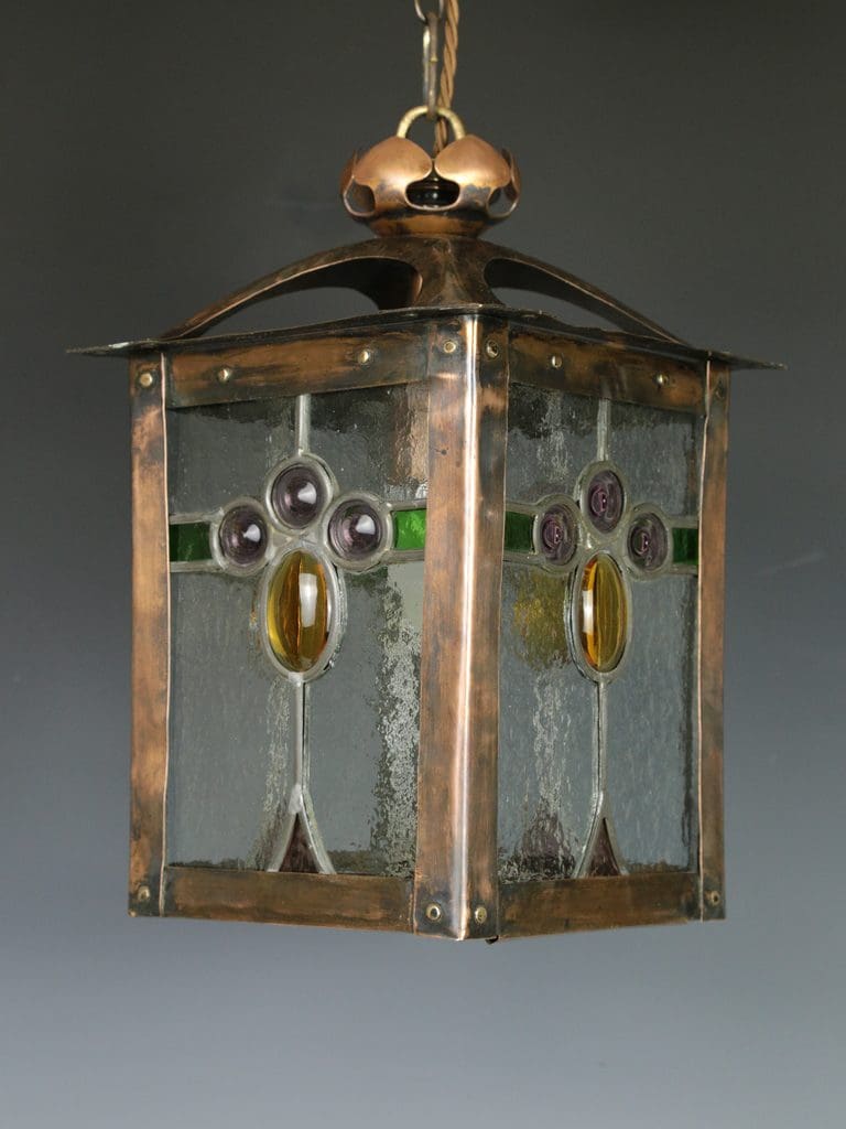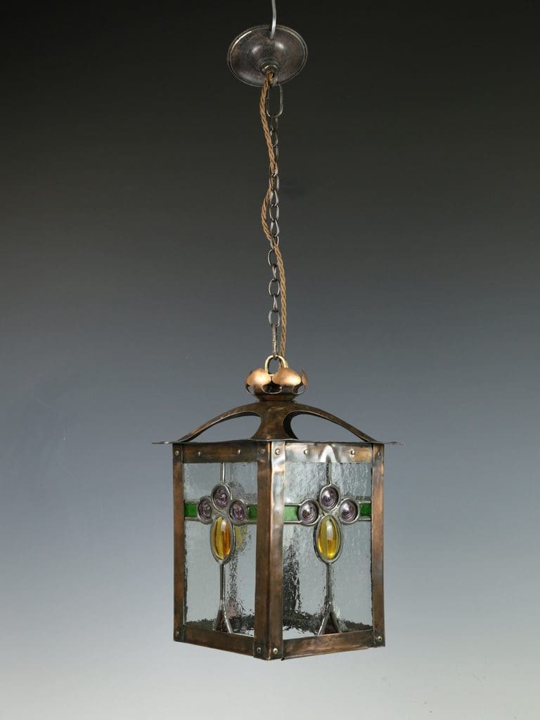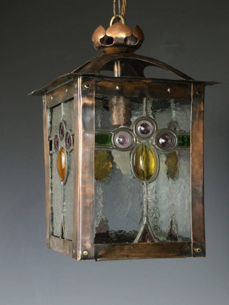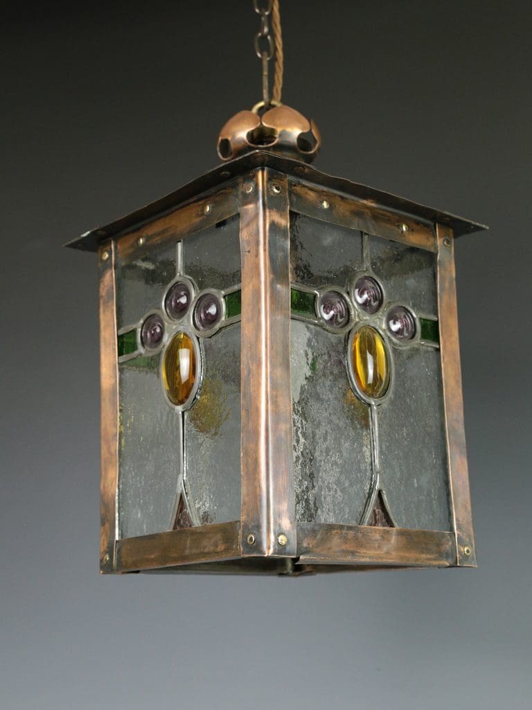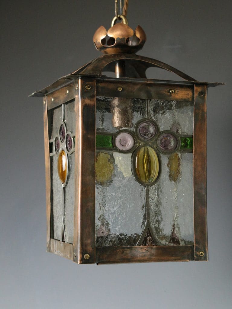Suspended from a ceiling, the Arts and Crafts Copper Lantern stands as a testament to fine craftsmanship and thoughtful design, making it an excellent choice for those who appreciate timeless elegance.